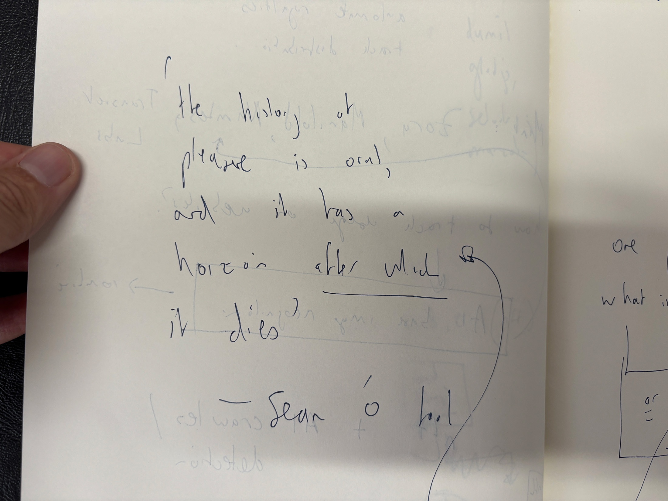 A handwritten note made during Matthew Blackman's presentation at A4's Forum quotes invited participant Sean O’Toole.