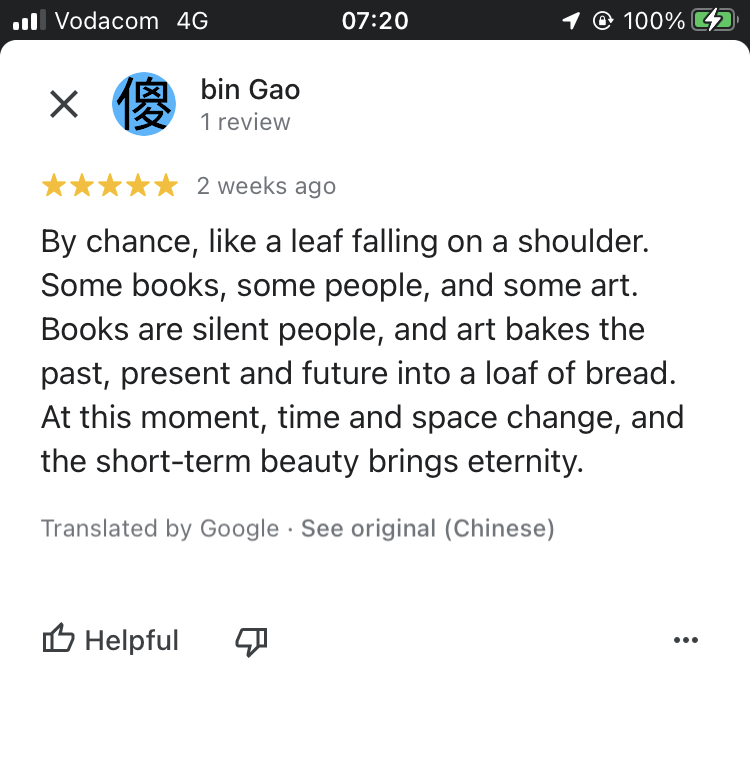 A haiku-review left by a visitor, auto-translated to lyrical effect.
