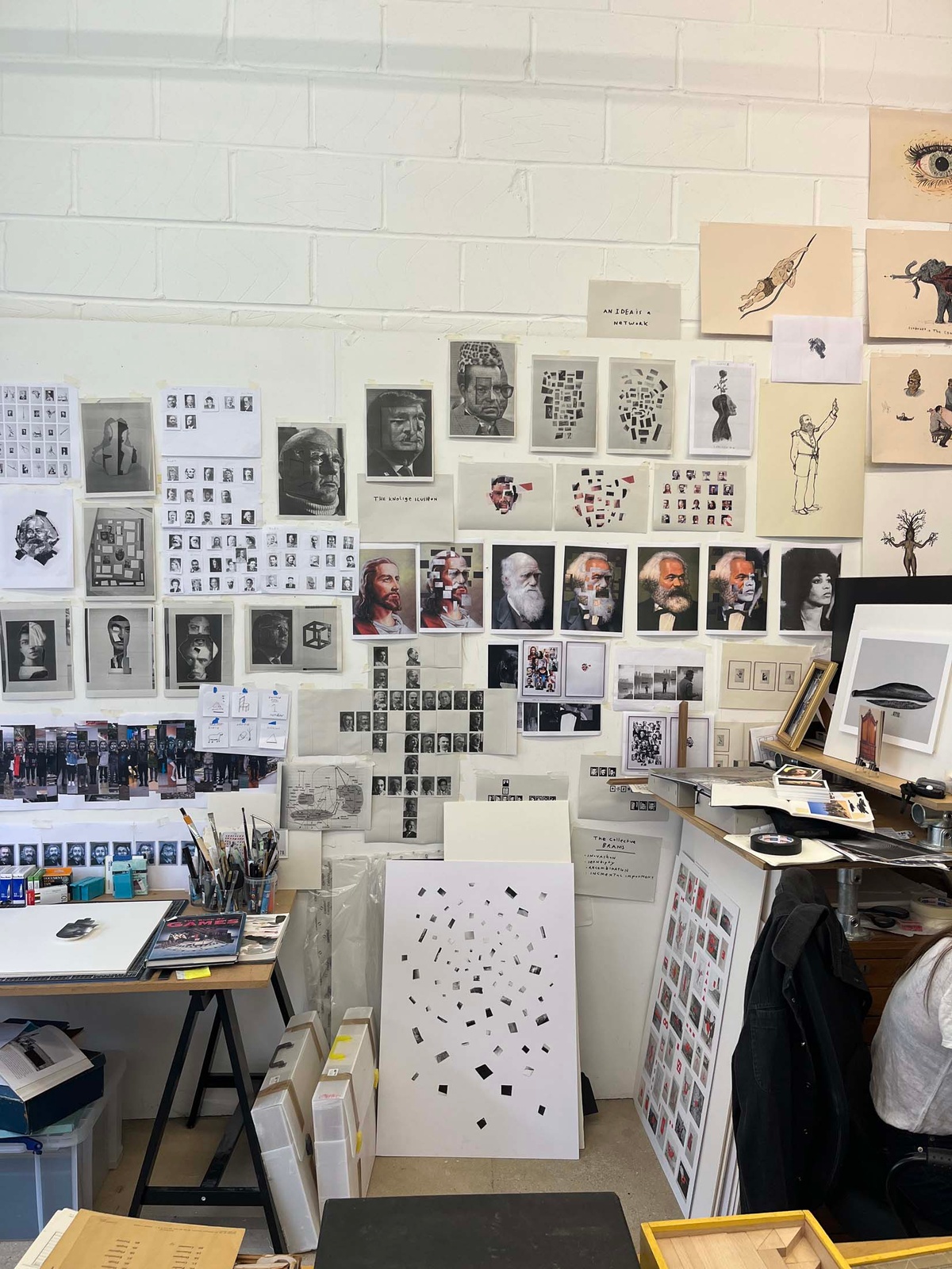 In advance of our arrival, Patrick cautions us against fetishising the studio – as place, as idea – a fair and sobering start. We do not want to canonise ‘the studio’, endow it with airs and graces, pretend it performs sacred work. Nor do we want to capture oddities and knickknacks, staging the place as a den of curiosities. What are we doing here? We are visiting Patrick at work, where part of his practice investigates the intersection between games and tests. In hand, we have a working title for a potential future project Patrick might wish to explore at A4: Testing Tests. It is useful to note that we are familiar with part of Patrick’s practice, having collaborated together with Michael Subotzky to produce a series of ‘book towers’ for the artists’ co-authored ‘Ponte City’ project. Patrick has previously been in residence at A4 in preparation for that project, but this is our first durational engagement with the artist to take place at his studio. (‘We’ refers to Josh Ginsburg, director and curator, and Sara de Beer, writer and editor.)