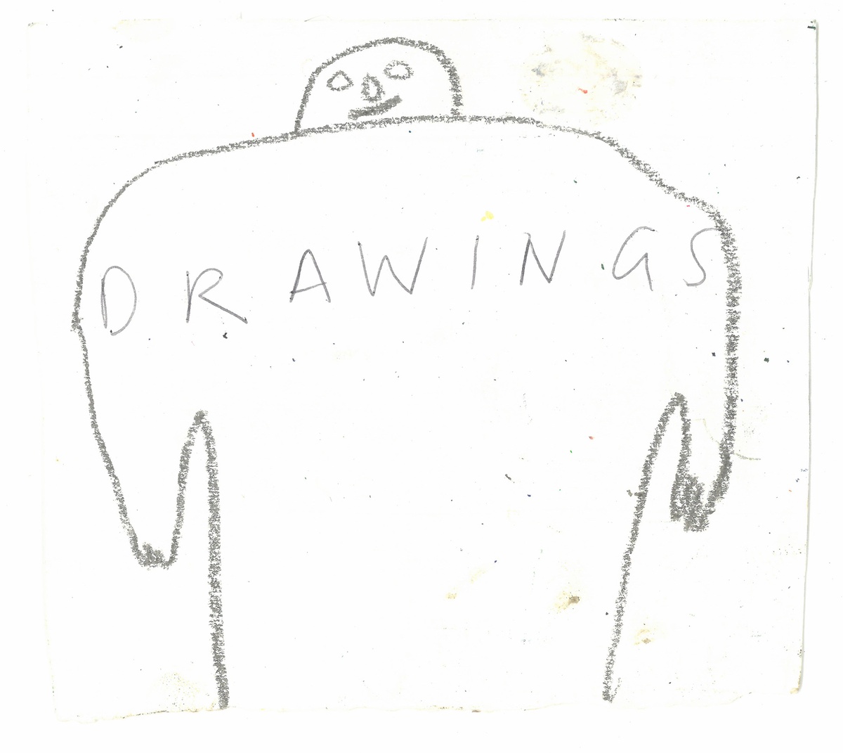 S.d.B. These drawings have a throwaway quality, in that they’re not kept in any sort of pristine way, and yet they are saved, and even in unfolding them, together we (Ben, Dan, you, me) didn’t discard the ones that have textures or things on them, the ‘mess’ of working life, like muddied footprints all over a page, or old paint splotches that mean detritus like googly eyes are stuck to them.