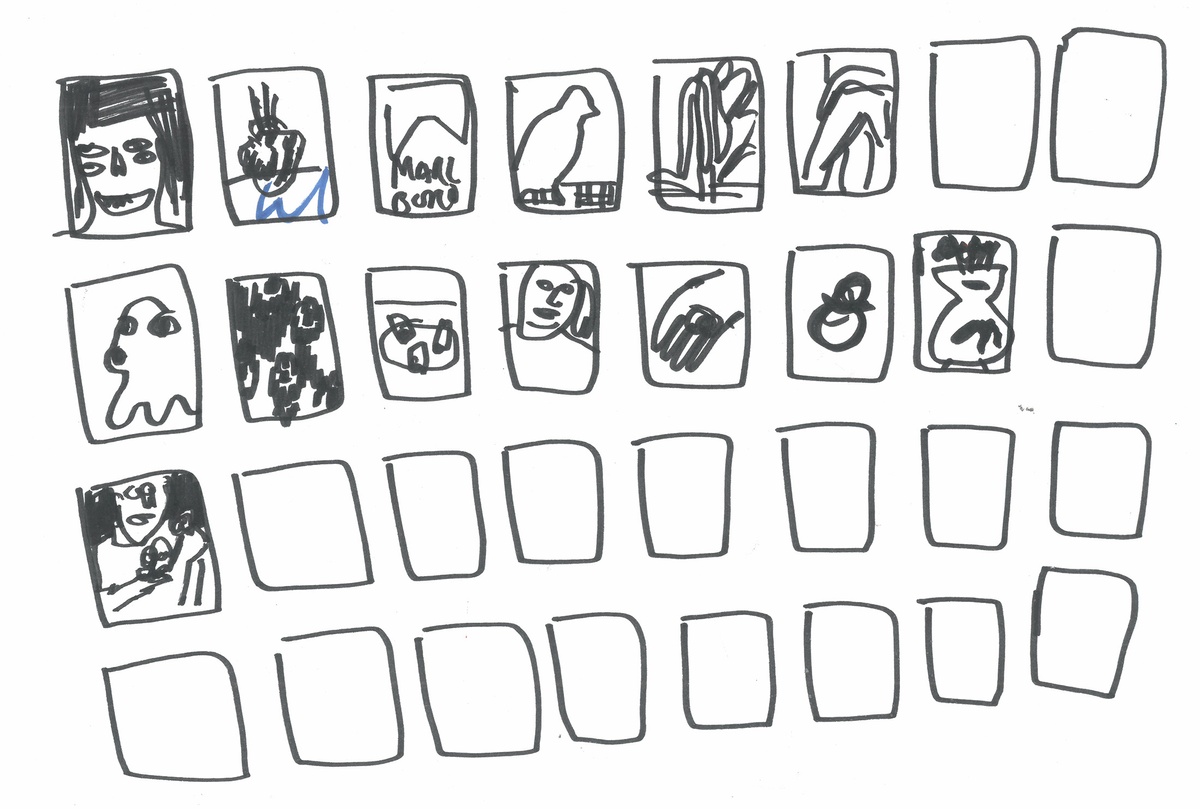 ☏ G.G. There are sheets of A4 paper, and Sharpies and Kokis, and I stick these papers all over the walls. The drawings are utilised. The notebook is too ‘iced’, too frozen a thing. These papers are disposable.