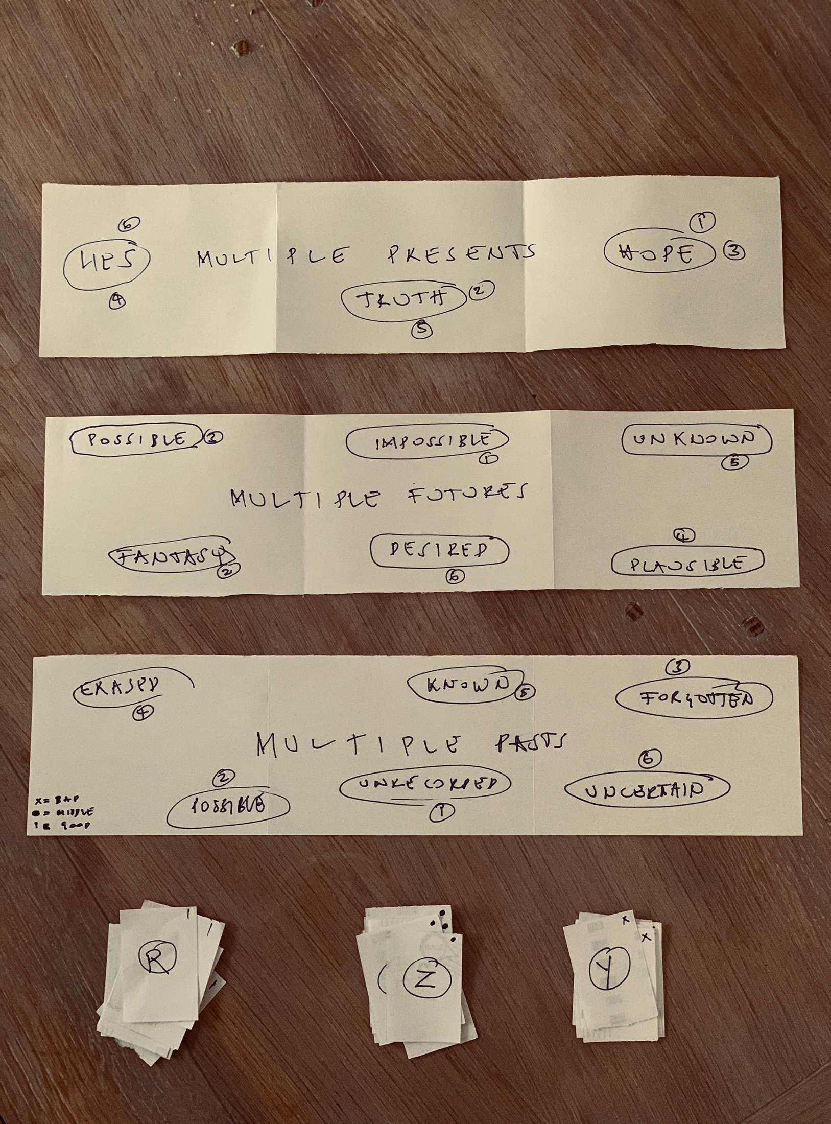 Both Cityscapes and A4 are interested in taking the tools accrued in subject-specific research outside of their respective disciplines. What happens when a group of arts workers play a game made by urbanists? And when arts-based thinking is applied in different contexts? Thinking through gameplay and conversation, with insights from A4’s individual team members, we aided in the prototyping of its form. The research process leveraged structure to produce spontaneity. We unpacked its messages and prompts, and pointed out avenues for expansion. We offered artworks as artefacts that carry messages and meaning over time to be unlocked in the present. We used our digital infrastructure to map out the game’s multilayered content, and our website Path feature to create a digital play-through of the game.
