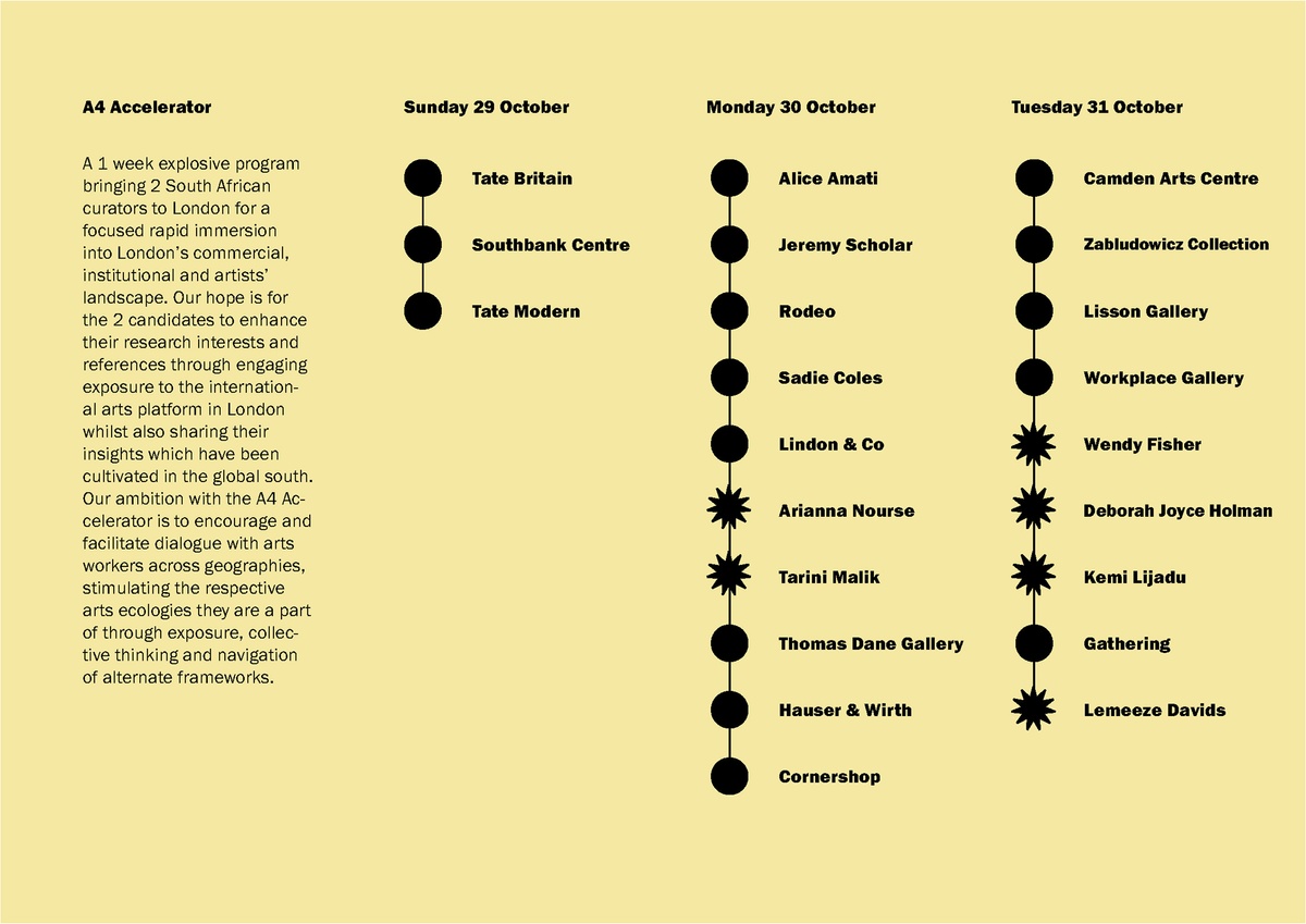 A4’s 2023 Accelerator is a one-week rapid immersion and intensive exploration of London’s arts ecology by two early-career curators from South Africa.