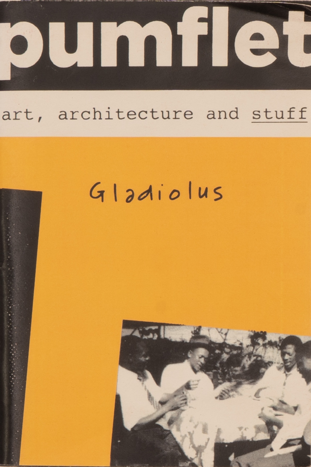 Pumflet Gladiolus documents the conversation between Ilze Wolff and Kemang Wa Lehulere about the neighbourhoods Luyolo and Redhill. Luyolo was a black neighbourhood in Simonstown that was completely demolished in 1964. The majority of the residents of Luyolo were relocated to Gugulethu. From Redhill, the ruins of which can be seen today, residents were removed to Ocean View. During their research about Luyolo and Redhill, Wa Lehulere and Wolff look at the paintings of Gladys Mgudlandlu, an artist from Gugulethu and the writings of Gladys Thomas, a poet living in Ocean View, in an attempt to find visual and literary links between these sites of forced removal.