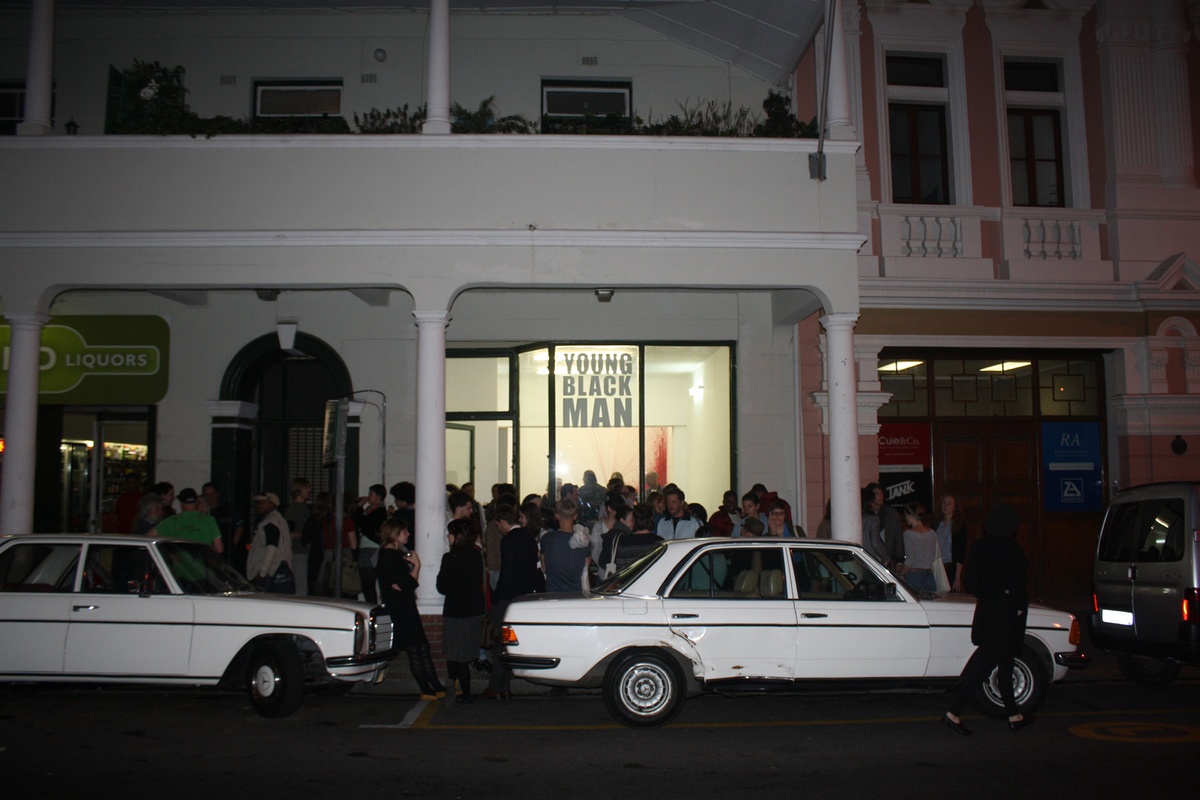 Their rebelliousness was deliberately placed in contrast to the increasing professionalisation and commercialisation of South Africa’s art world. Despite their apparent cynicism, they showed a commitment to creating a space in which artists could produce boundary-pushing installations. Examples of this desire to platform work outside of the conventional are Belinda Blignaut’s installation of vaginally-shaped pieces of chewed up bubblegum, Stealing the Words, and Athi-Patra Ruga’s performance After He Left, in which he scaled the wall of an Evangelical church while dressed in a leotard, high heels, and a helmet. It is noteworthy that both of these artists are now considered part of South Africa’s ‘art historical canon’. YOUNG BLACKMAN had a consistent monthly exhibition programme, beginning in September 2009, primarily made up of solo exhibitions. The exhibited artists ranged from recent graduates (Linda Stupart, Safia Stodel, and Gerald Mashona) to more established artists (Kendell Geers, Sue Williamson, and John Nankin), with the final exhibition taking place in May 2011. With the space’s closing, Blackman demonstrated the sincerity which underlied the project in an essay published by Artthrob titled, ‘Reflections on the Closing of the Project Space YOUNG BLACKMAN – from the corpse’s mouth.’ Though he acknowledges the economic unsustainability of the project, he also points to a wider crisis of culture: