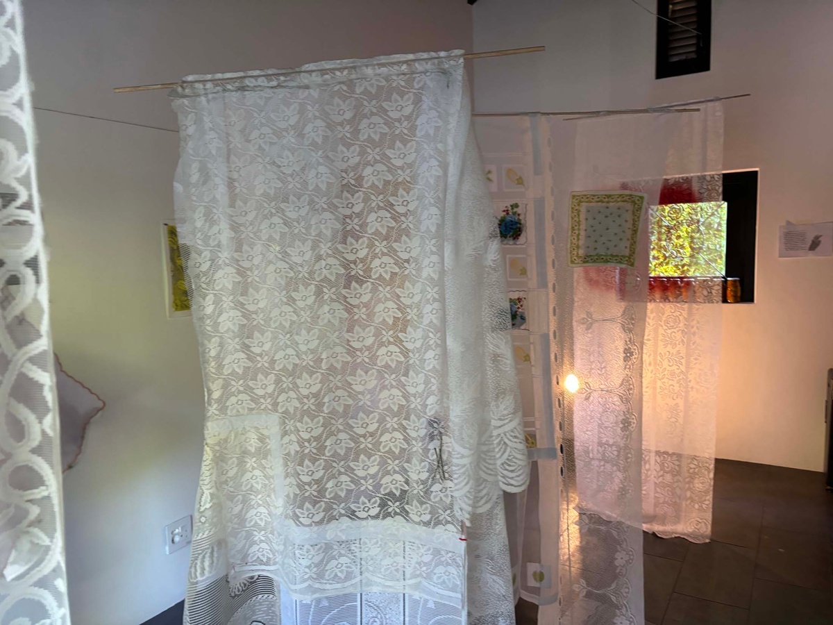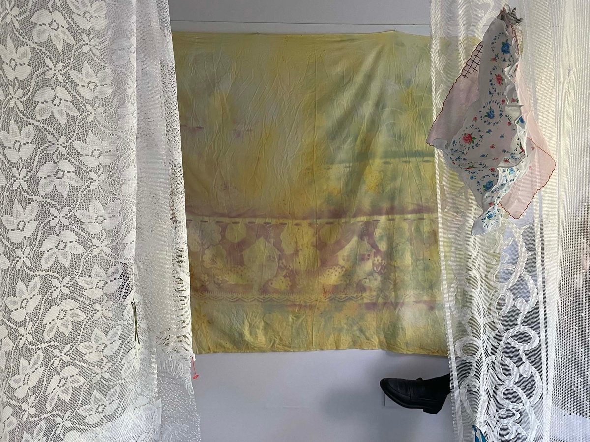 I have been talking about them as flags, but not necessarily thinking about them as flags. In my family, we have a history of land dispossession. What does a flag mean in a context of dispossession? What is a flag for a place that doesn’t exist? If I take these outside, could the flags be portals or windows to energies from the past, becoming these in a different element?