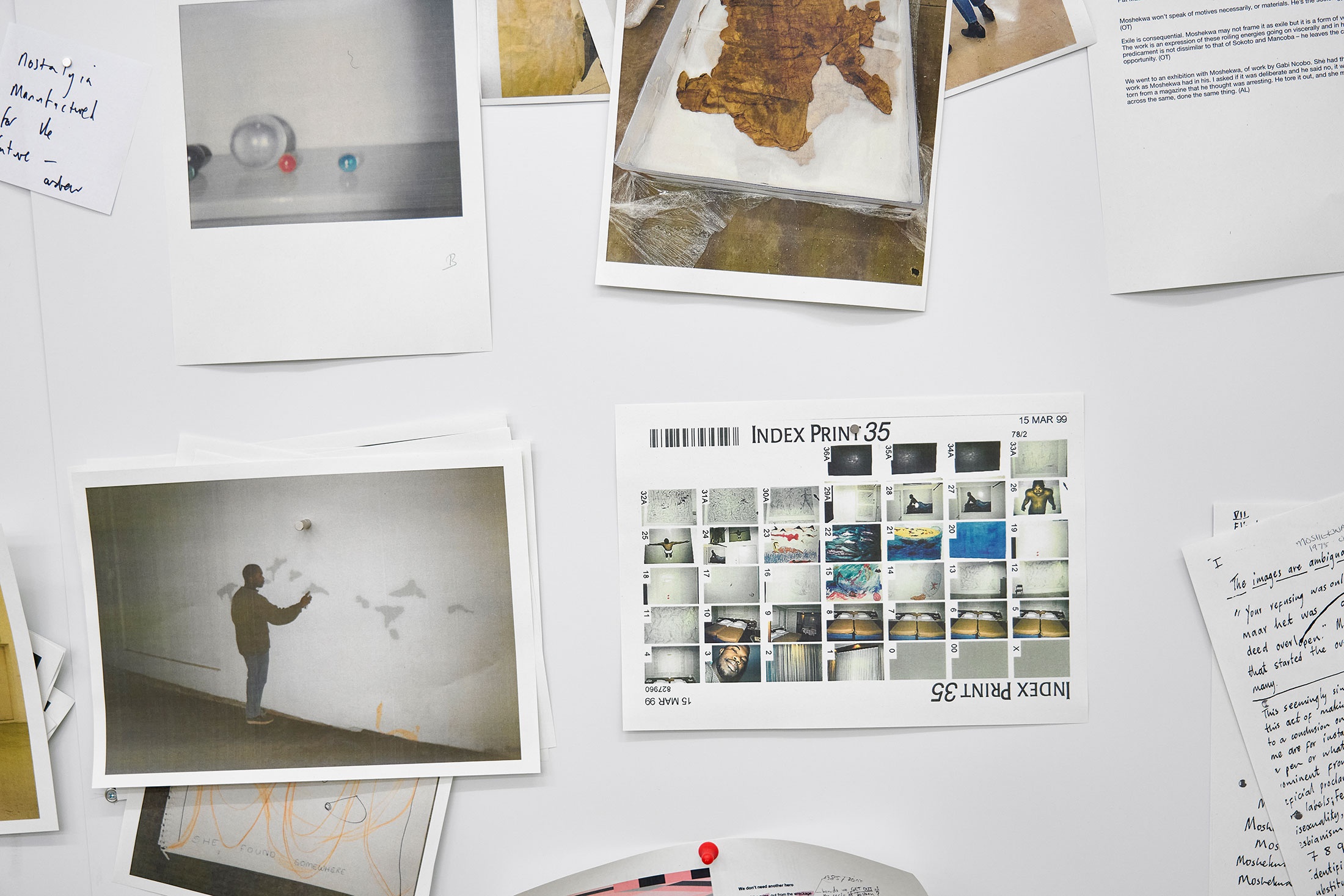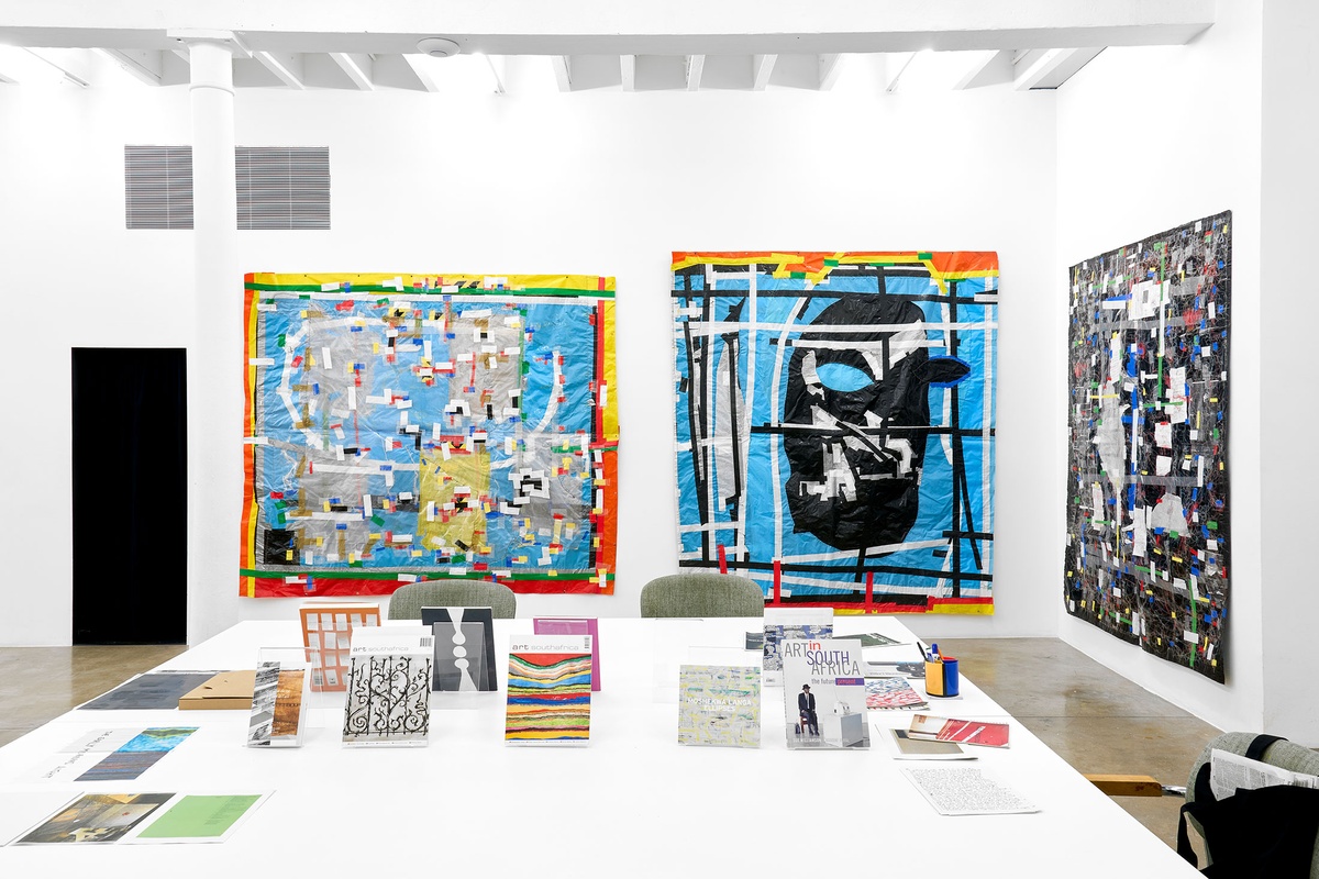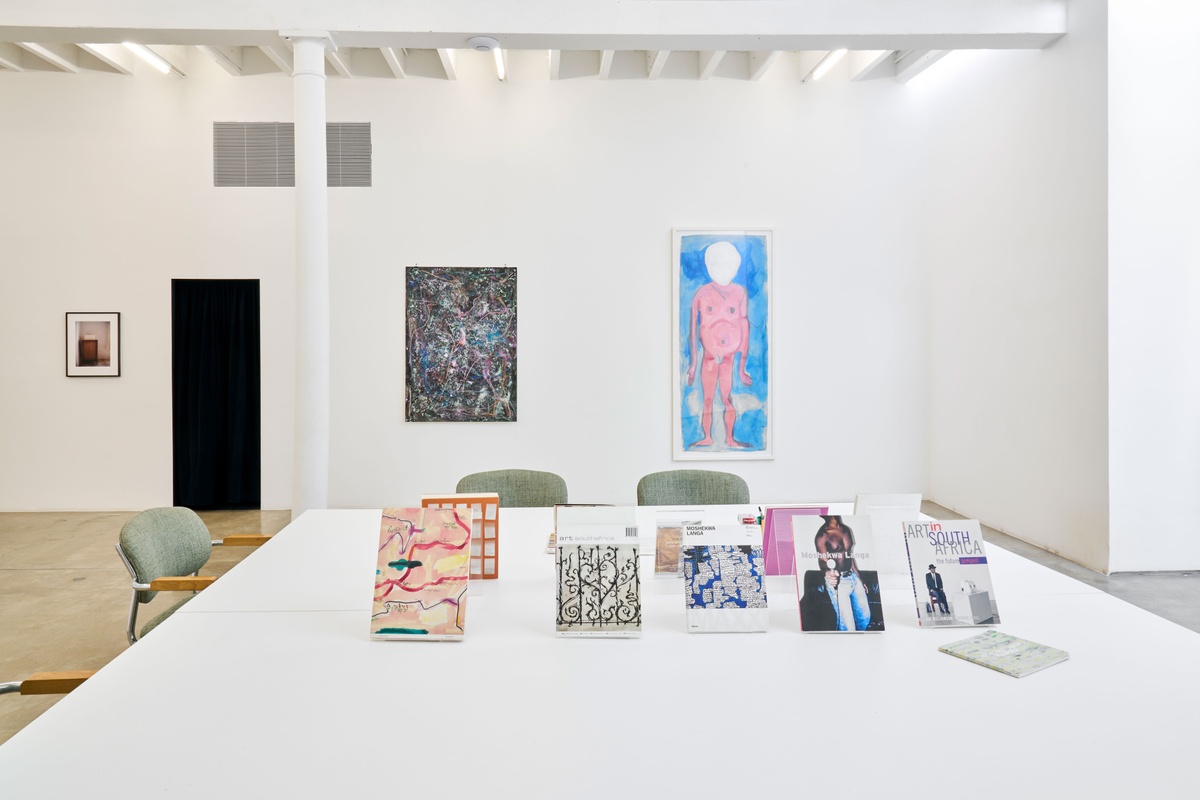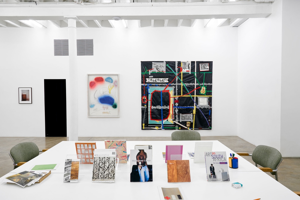 We opened the project with a question: "How to make a book about Moshekwa Langa?" Over the course of three months, the Gallery became an installation and studio environment that included spaces for thinking, writing and planning. Colleagues and arts workers familiar with Moshekwa's practice were invited to talk at a table situated inside the exhibition, or online. We asked each to imagine what a book about Moshekwa might look like, using the idea of a 'book' as a heuristic tool for exploring three decades of Moshekwa’s artistic practice. Moshekwa visited from Amsterdam. We placed four different hangs of his artworks: some for quick looking and talking about, as well as installations for longer study. Visitors to the exhibition were invited to engage Moshekwa’s materials and methods. The process is still unfolding, with the making of a book about Moshekwa from these findings to be published in 2025.