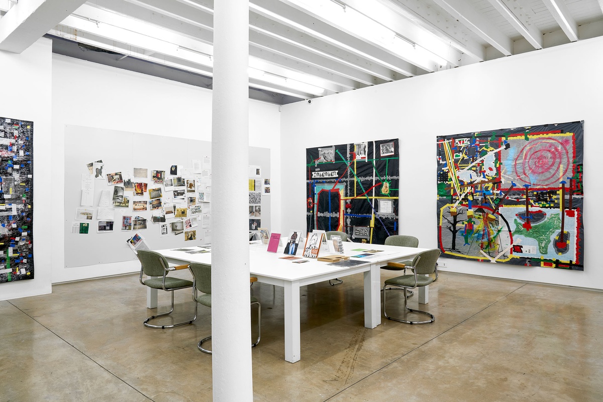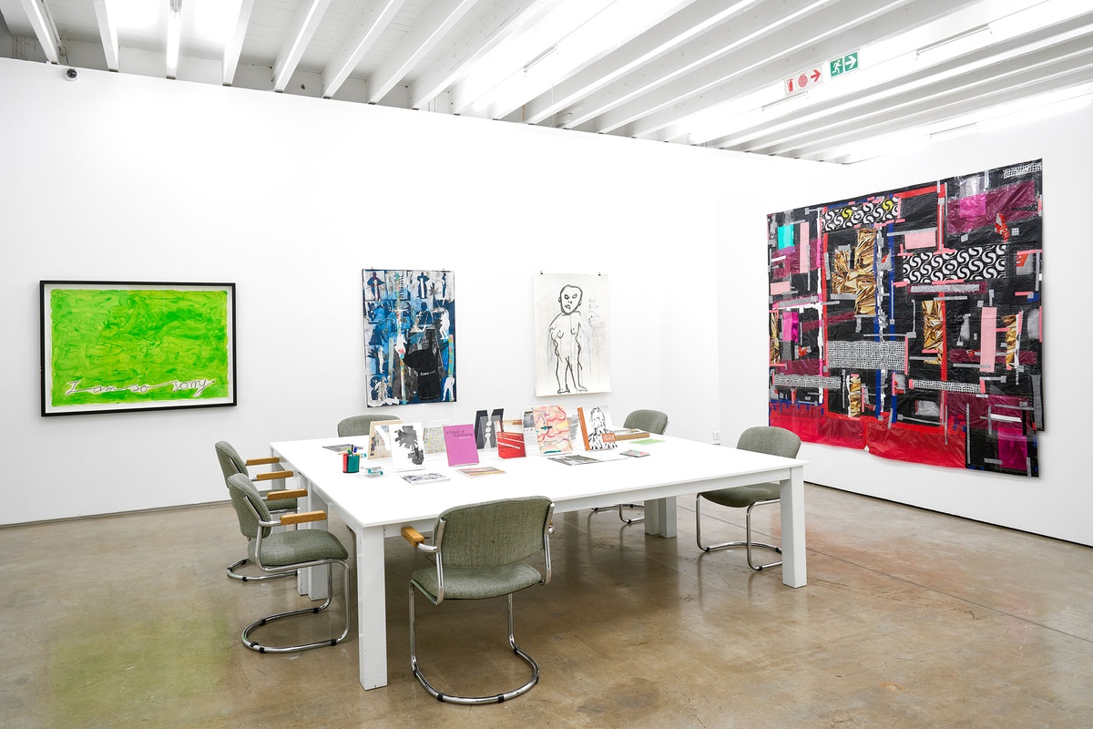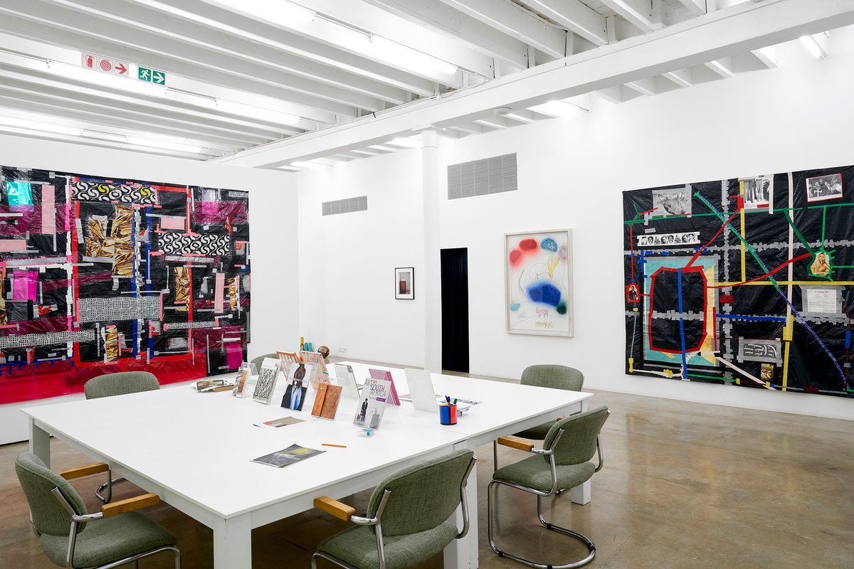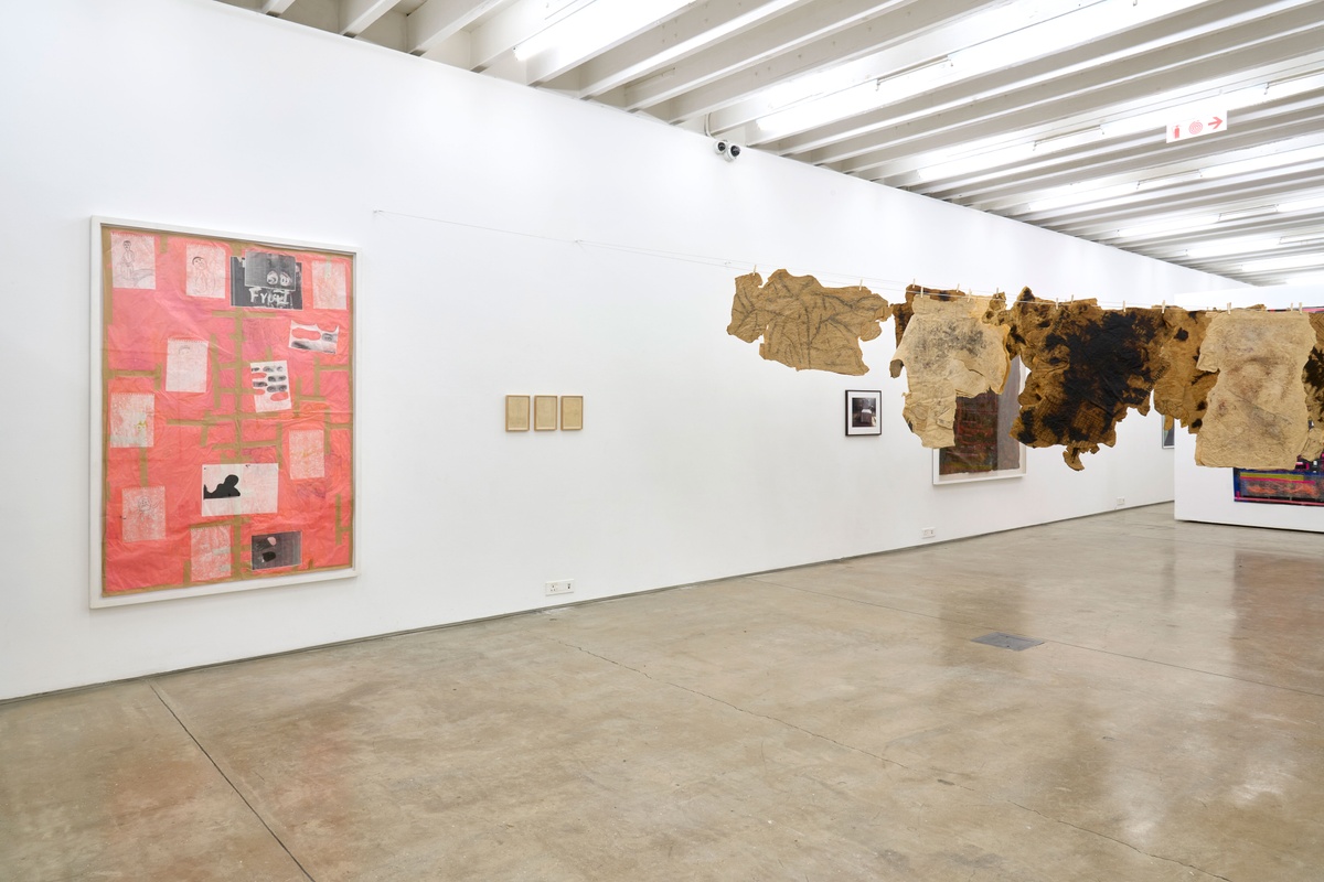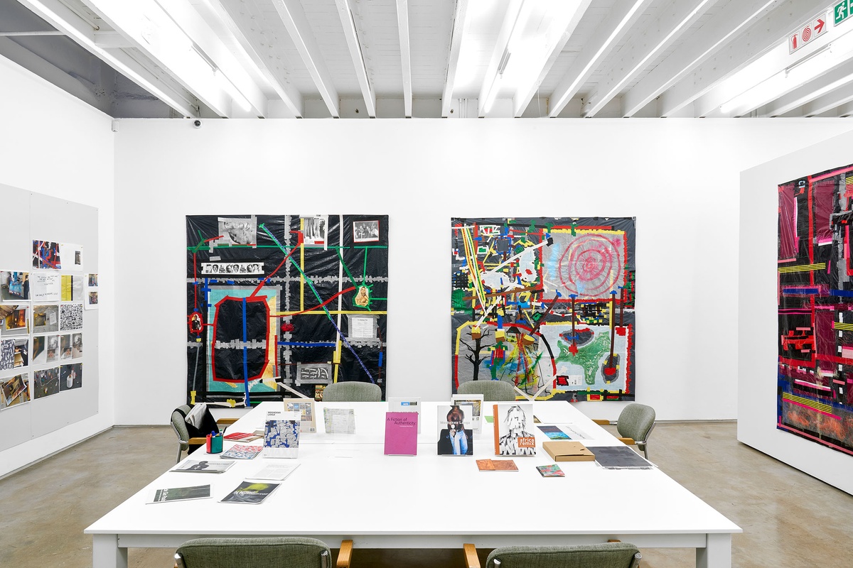 We opened the project with a question: "How to make a book about Moshekwa Langa?" Over the course of three months, the Gallery became an installation and studio environment that included spaces for thinking, writing and planning. Colleagues and arts workers familiar with Moshekwa's practice were invited to talk at a table situated inside the exhibition, or online. We asked each to imagine what a book about Moshekwa might look like, using the idea of a 'book' as a heuristic tool for exploring three decades of Moshekwa’s artistic practice. Moshekwa visited from Amsterdam. We placed four different hangs of his artworks: some for quick looking and talking about, as well as installations for longer study. Visitors to the exhibition were invited to engage Moshekwa’s materials and methods. The process is still unfolding, with the making of a book about Moshekwa from these findings to be published in 2025.