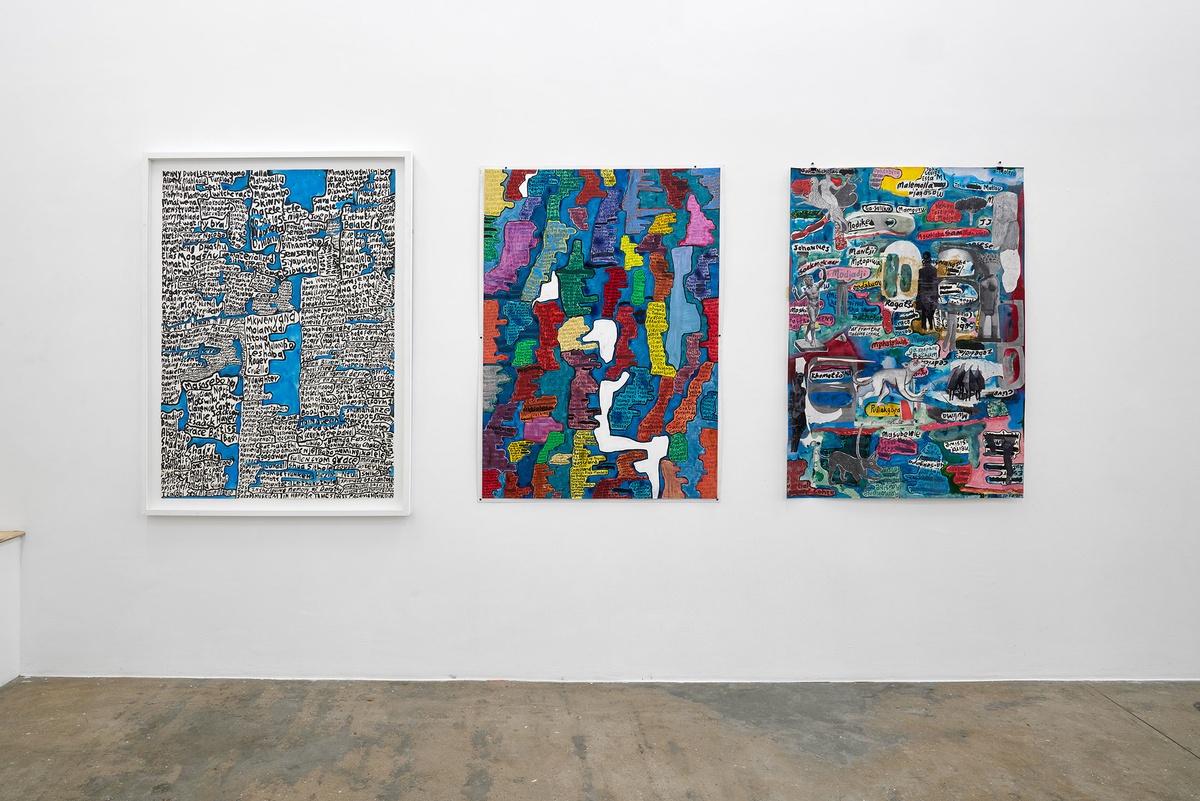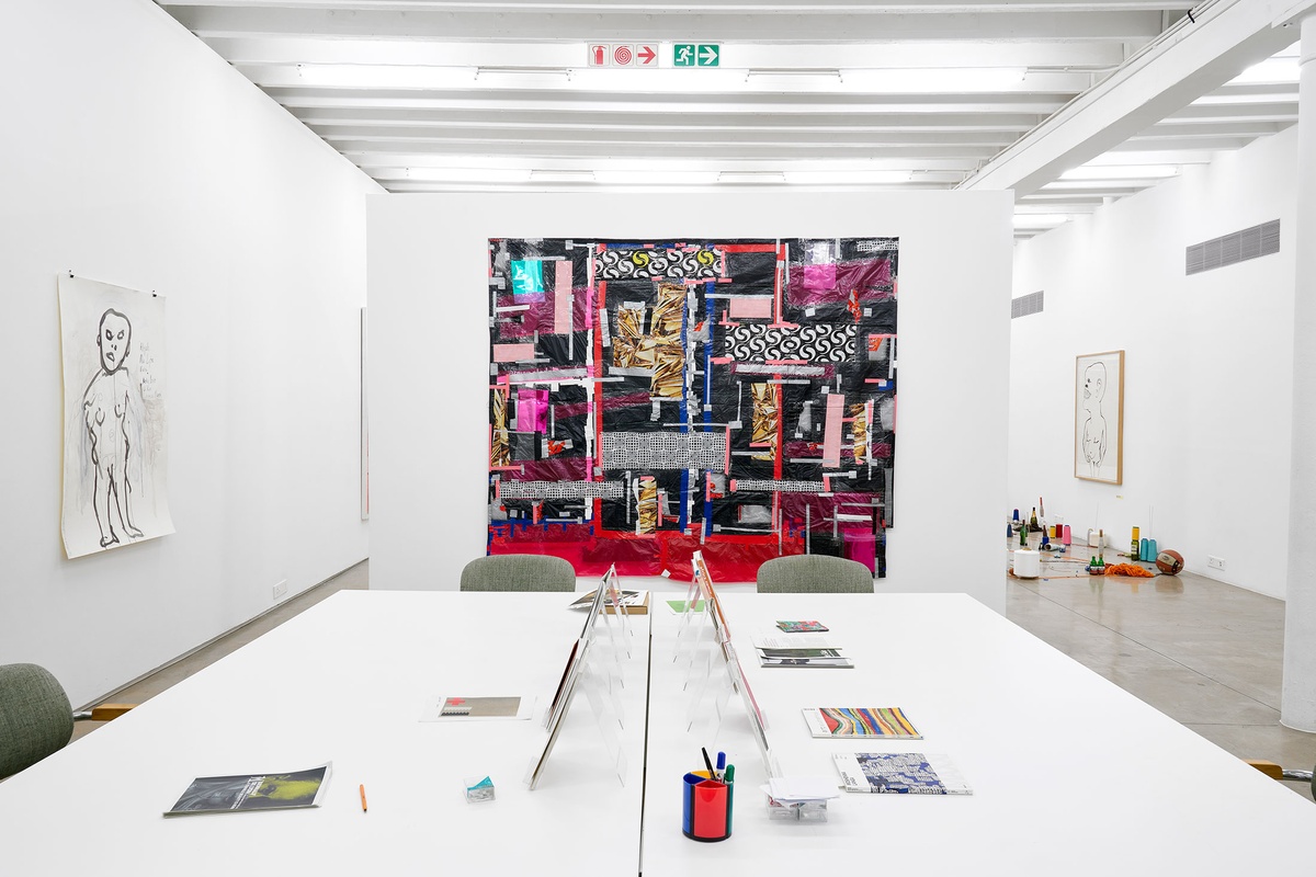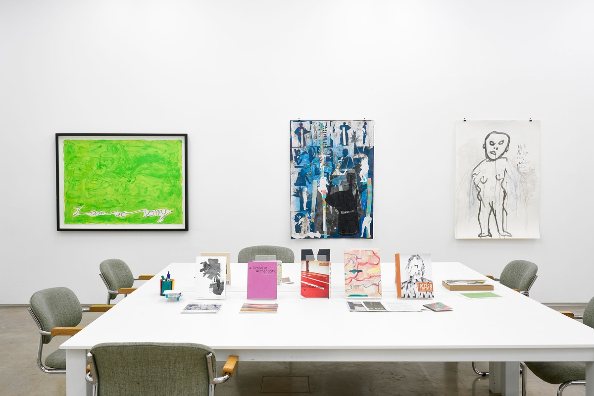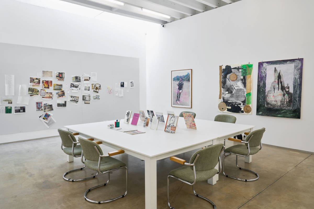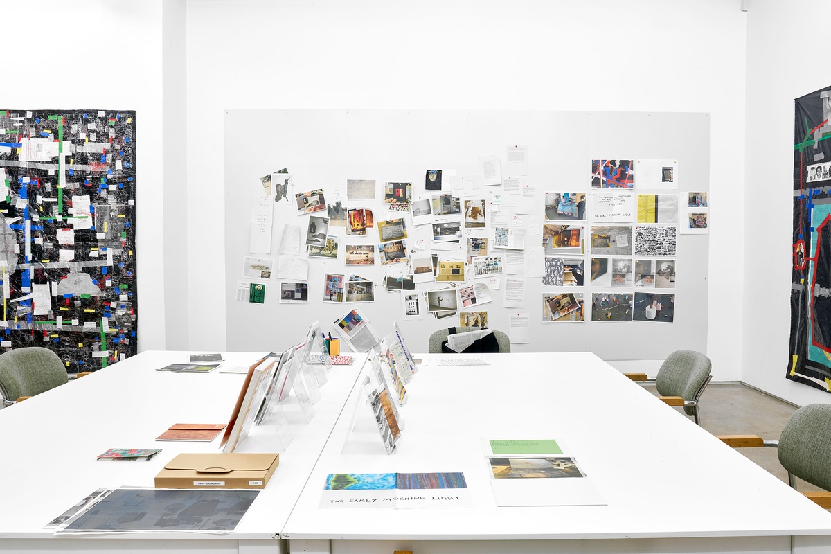 We opened the project with a question: "How to make a book about Moshekwa Langa?" Over the course of three months, the Gallery became an installation and studio environment that included spaces for thinking, writing and planning. Colleagues and arts workers familiar with Moshekwa's practice were invited to talk at a table situated inside the exhibition, or online. We asked each to imagine what a book about Moshekwa might look like, using the idea of a 'book' as a heuristic tool for exploring three decades of Moshekwa’s artistic practice. Moshekwa visited from Amsterdam. We placed four different hangs of his artworks: some for quick looking and talking about, as well as installations for longer study. Visitors to the exhibition were invited to engage Moshekwa’s materials and methods. The process is still unfolding, with the making of a book about Moshekwa from these findings to be published in 2025.