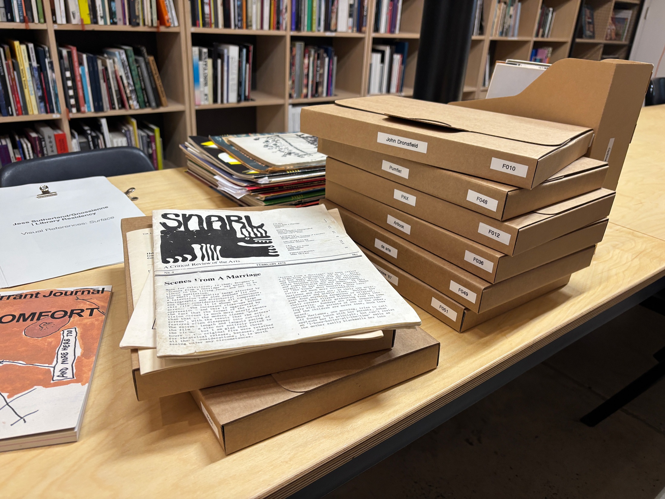 Parallel to this process, Sutherland is interested in researching the antecedents of Gnossienne – art and literature periodicals such as Staffrider, Snarl, Pumflet, Chimurenga’s The Chronic, Toilet Paper and more. Looking to A4 Library’s archive of books and ephemera, she hopes to expand her conception of the potential of the zine/journal.
