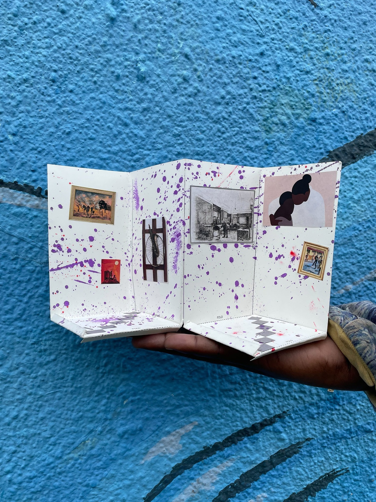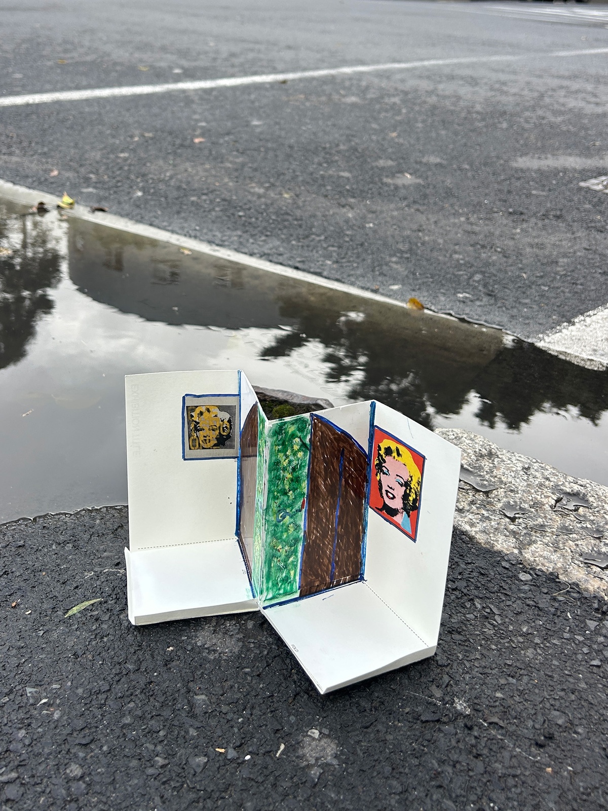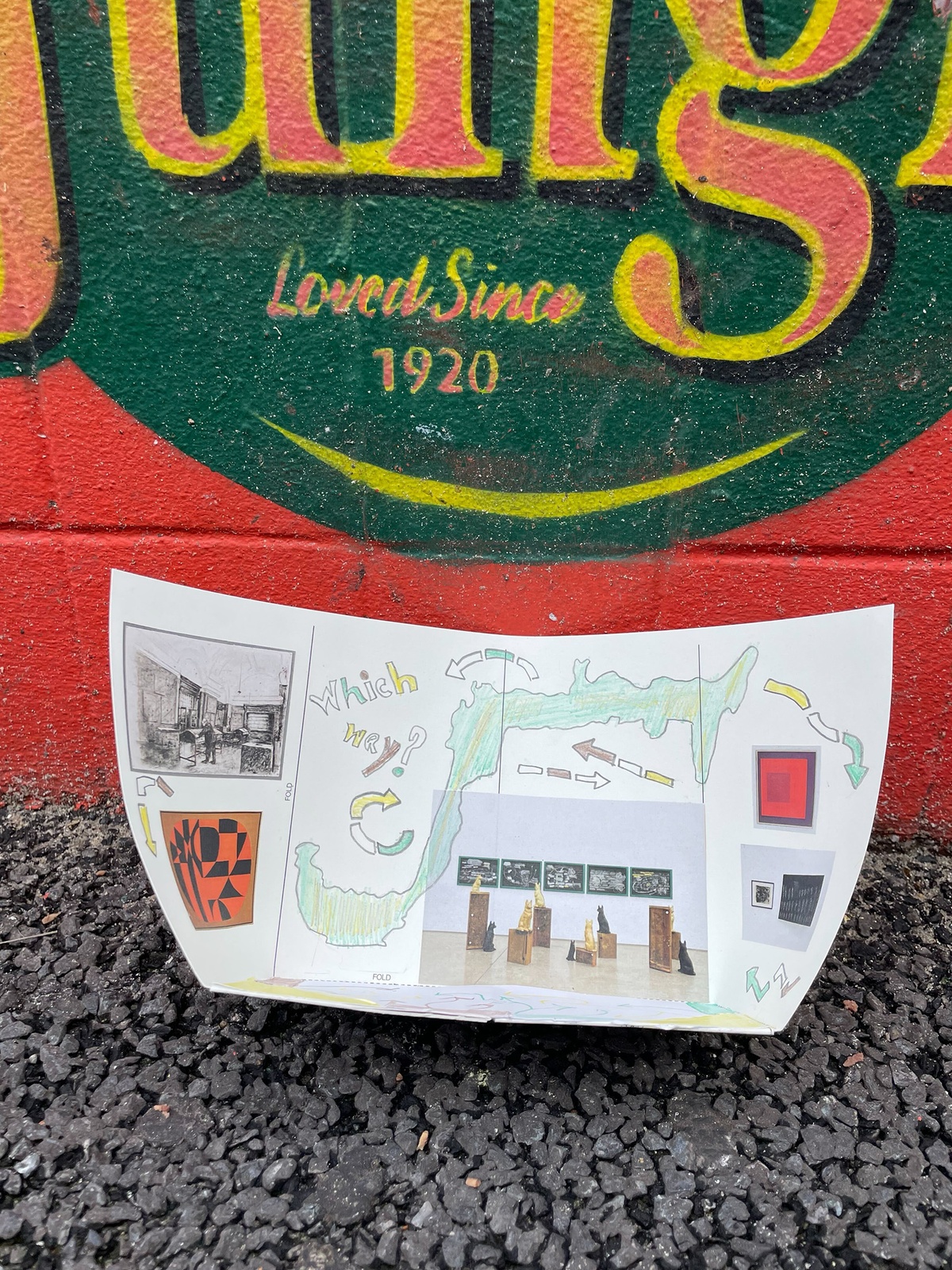 As the workshop unfolds, participants research their selected artworks, experiment with different hanging methods, and develop titles and curatorial statements for their exhibitions. The workshop culminates in a public walk through the neighbourhood, where learners position their miniature exhibitions in urban settings. Each display is documented through photographs, paired with a portrait of its creator. These images and processes are later compiled into a zine that captures the spirit and outcomes of the workshop.
