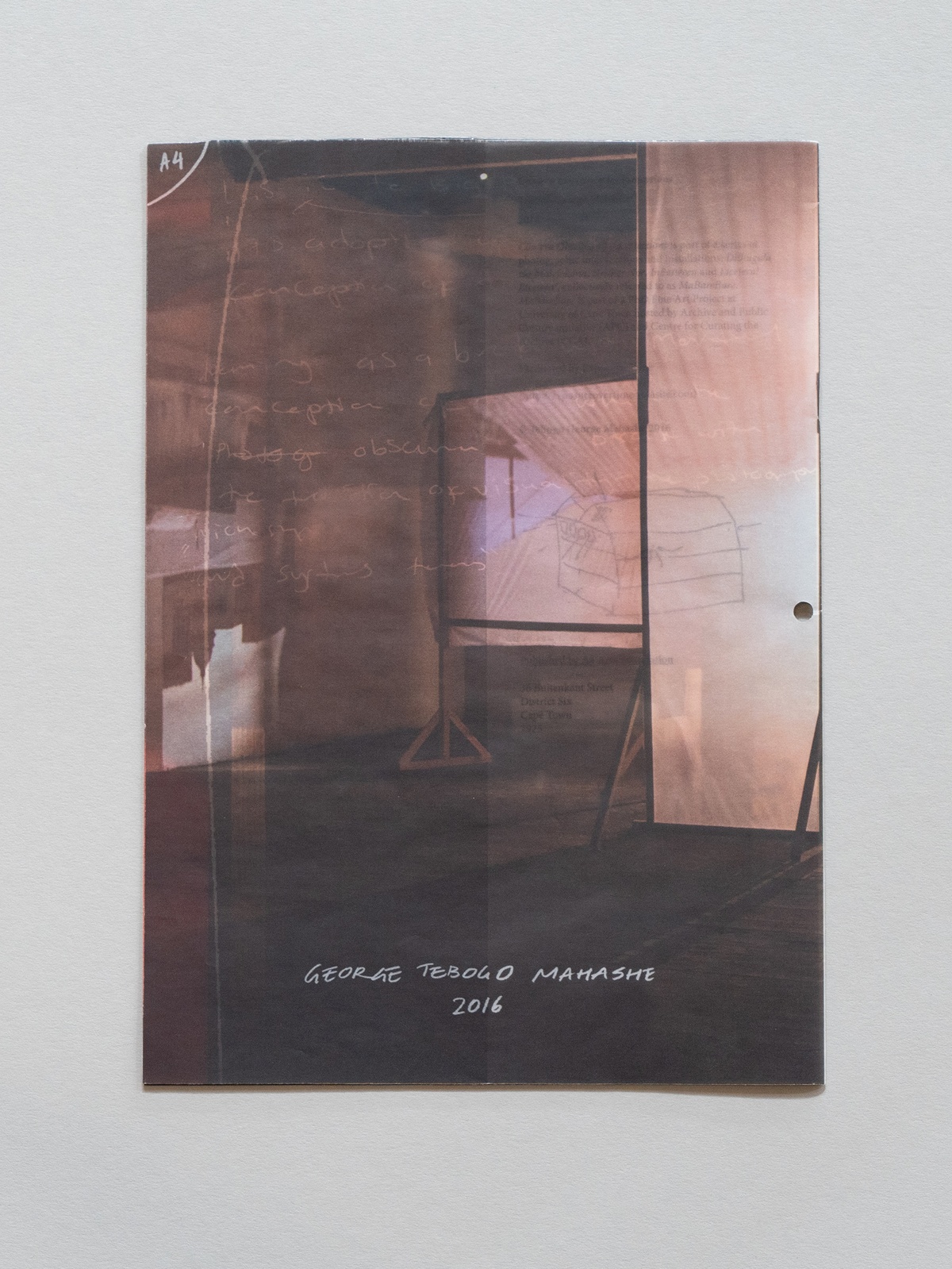 A publication by George Mahashe and francis burger documenting Mahashe’s installation, Camera Obscura #3, at A4.