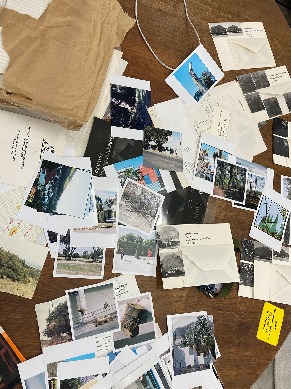 I've been hawking these envelopes, this archival matter, around since I brought them home in 2017 after a visit to Pretoria. By then, I’d become acquainted with not only photographers like David Goldblatt but also people like Ed Ruscha, who I was very taken with, people who were using photography in more interesting ways beyond the documentary, who were interested in seriality but also in the pictures beyond their subject matter (I’m thinking specifically of Ruscha’s Los Angeles Apartments). So when I came into these dendrological photographs, I thought, well, there’s something here; I just wasn’t quite sure what it was. I would periodically drag them out and chew someone's ear off about them. And I think that's how Daniel, your colleague at A4, got wind of the collection.