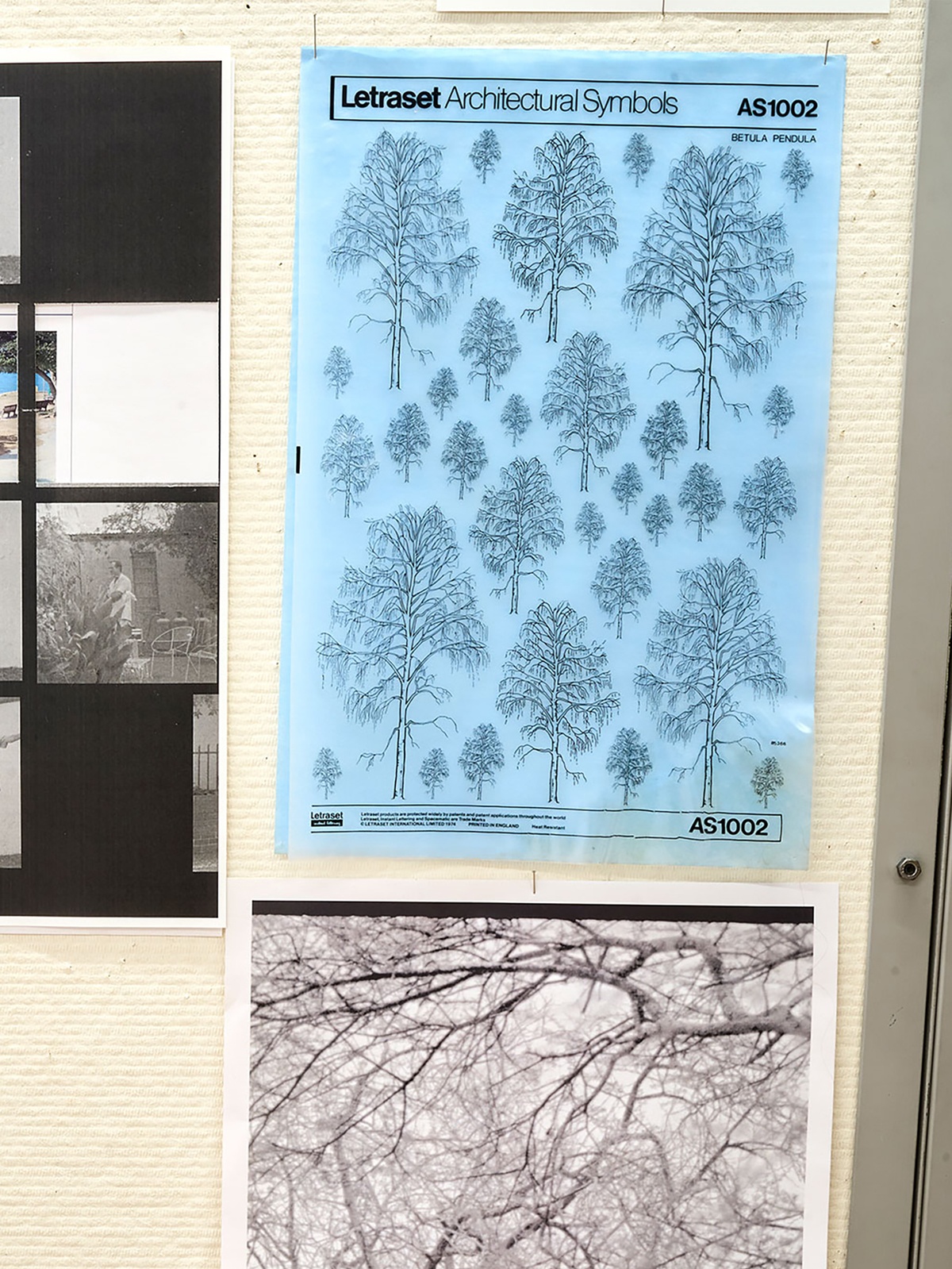 L.B. During your residency at A4, there was also additional material parallel to the photographs at play, like your Letraset forest and an identity plaque from a tree.