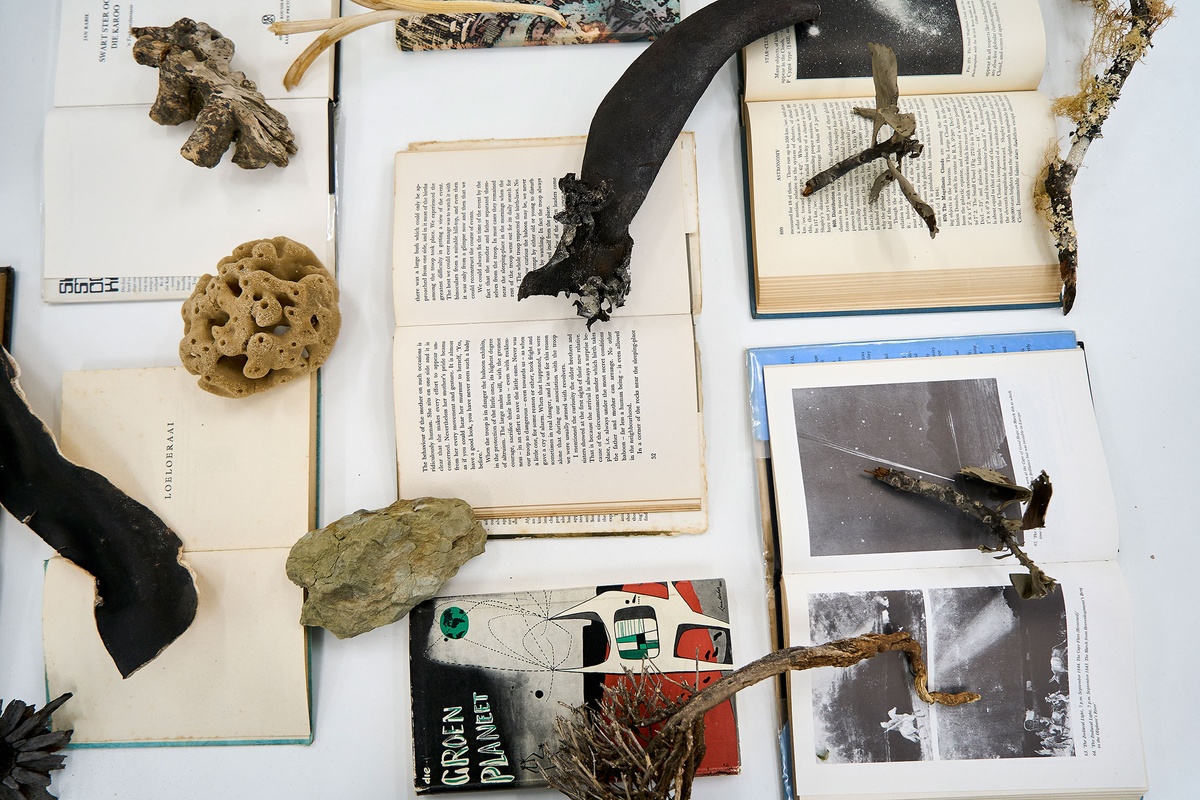 Engaged in a collaborative project across many years that uses deep-time, mythology, space and Earth’s nature as its materials, Tommaso Fiscaletti takes time in the Reading Room to unpack the ceaseless gathering and output of Hemel Liggaam or The Attempt To Be Here Now. A common love of the Karoo shared by Fiscaletti and Nic Grobler set the project’s creators on road trips towards Sutherland and beyond, armed with Afrikaans science-fiction and their cameras. Read in simultaneous English translation by Grobler (Afrikaans) to Fiscaletti (Italian), the strange and otherworldly content of the books began to infiltrate the photographer's adventures. In this way, Hemel Liggaam can be read as a science-fiction of its own. Staged across multiple exhibitions in different contexts over the past several years, its speculative worlds made from people both real and imagined, indigenous mythologies, environmental concerns, and signs and symbols, collide and are reconfigured in endless constellations (whether in a gallery, a book, a studio, a museum) across time and place.