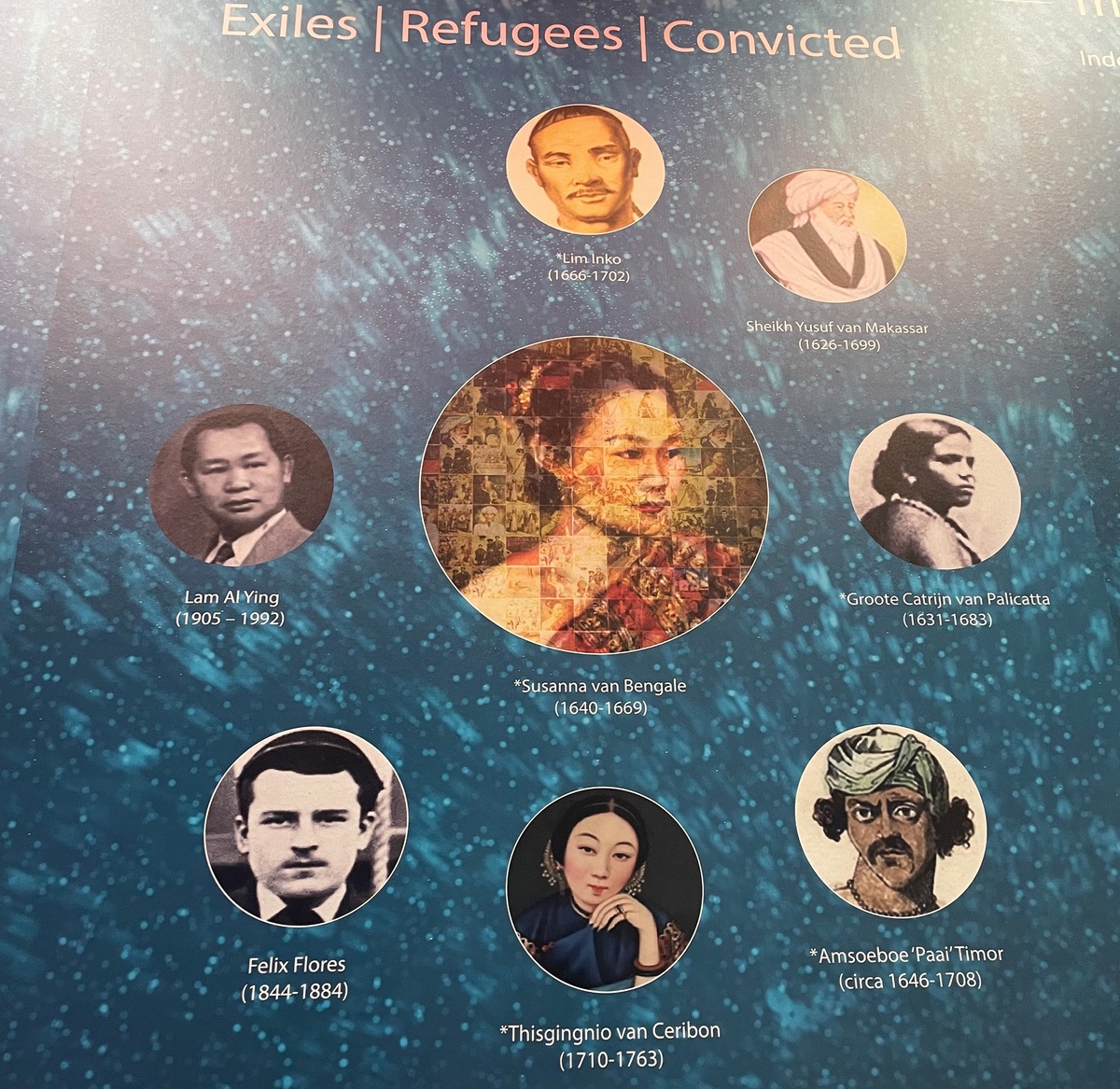 L.D. Chinese immigration to South Africa happened in a variety of ways. In the Castle, I came across an exhibition in a room called the Camissa Museum. It focused on Cape Indigenous African identity and explained the various ancestral ‘tributaries’ that contributed to the larger ‘river’ of hybrid identity. One of the tributaries marked ‘Exiles | Refugees | Convicted’ included many East and South Asian political figures, who had been banished to the Cape for challenging Dutch imperialism in South Asia.