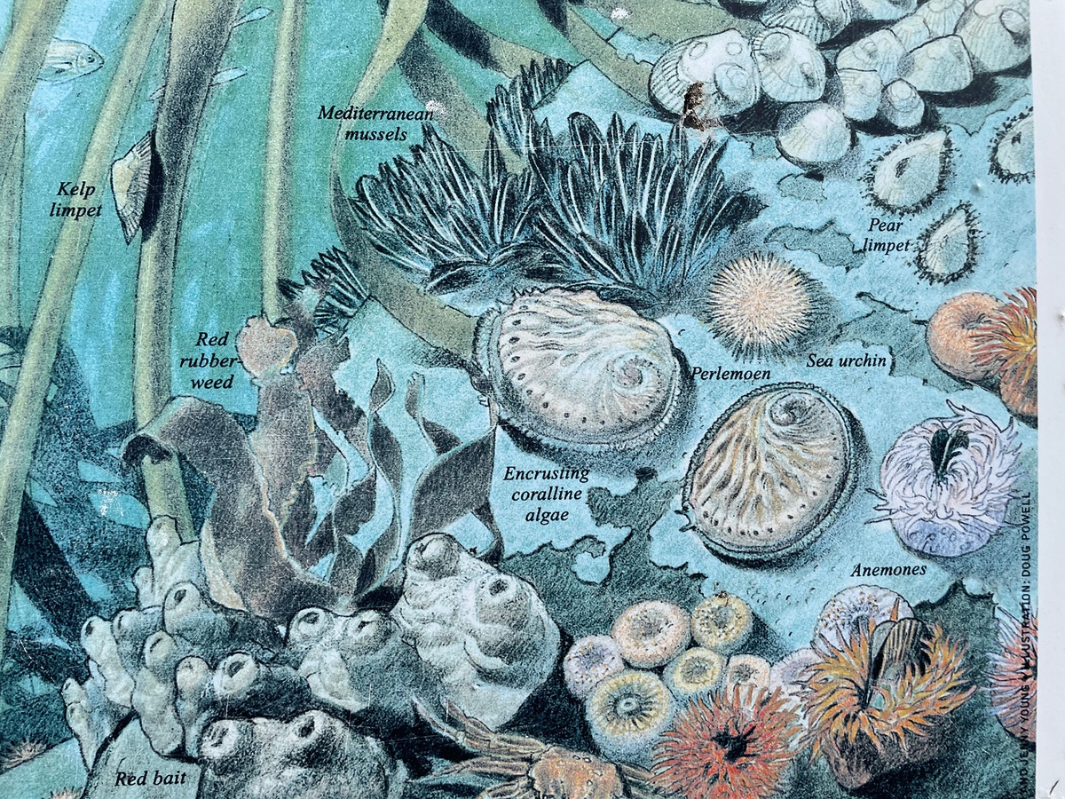 I’m interested in the idea that abalone is normalised in Hong Kong because I found a company that sells abalone in South Africa, and their FAQ page contains questions like: “Is eating abalone ethical/legal?” This unsuspecting snail connects contemporary ecological issues like overfishing, economic terms of trade, and indigenous knowledge preservation. Historically, the sea snail was harvested by the strandlopers, coastal foraging communities connected to KhoeKhoe ancestry. A lot of this knowledge of abalone becomes lost – how it tastes, how to eat it, where to find it – and obscured through poaching.