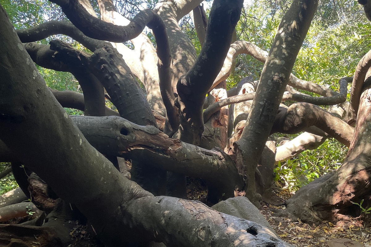 Jan van Riebeeck’s Hedge in Kirstenbosch Gardens comes to mind; sprawling almond trees that were planted in 1660. They demarcate the settlement boundary of the first Cape colony, as the South African National Biodiversity Institute states: “For many, this hedge marks the first step on the road to apartheid and symbolises how white South Africa cut itself off from the rest of Africa, dispossessed the indigenous people and kept the best of the resources for itself.”6