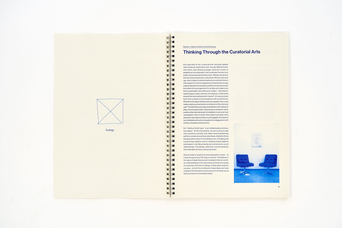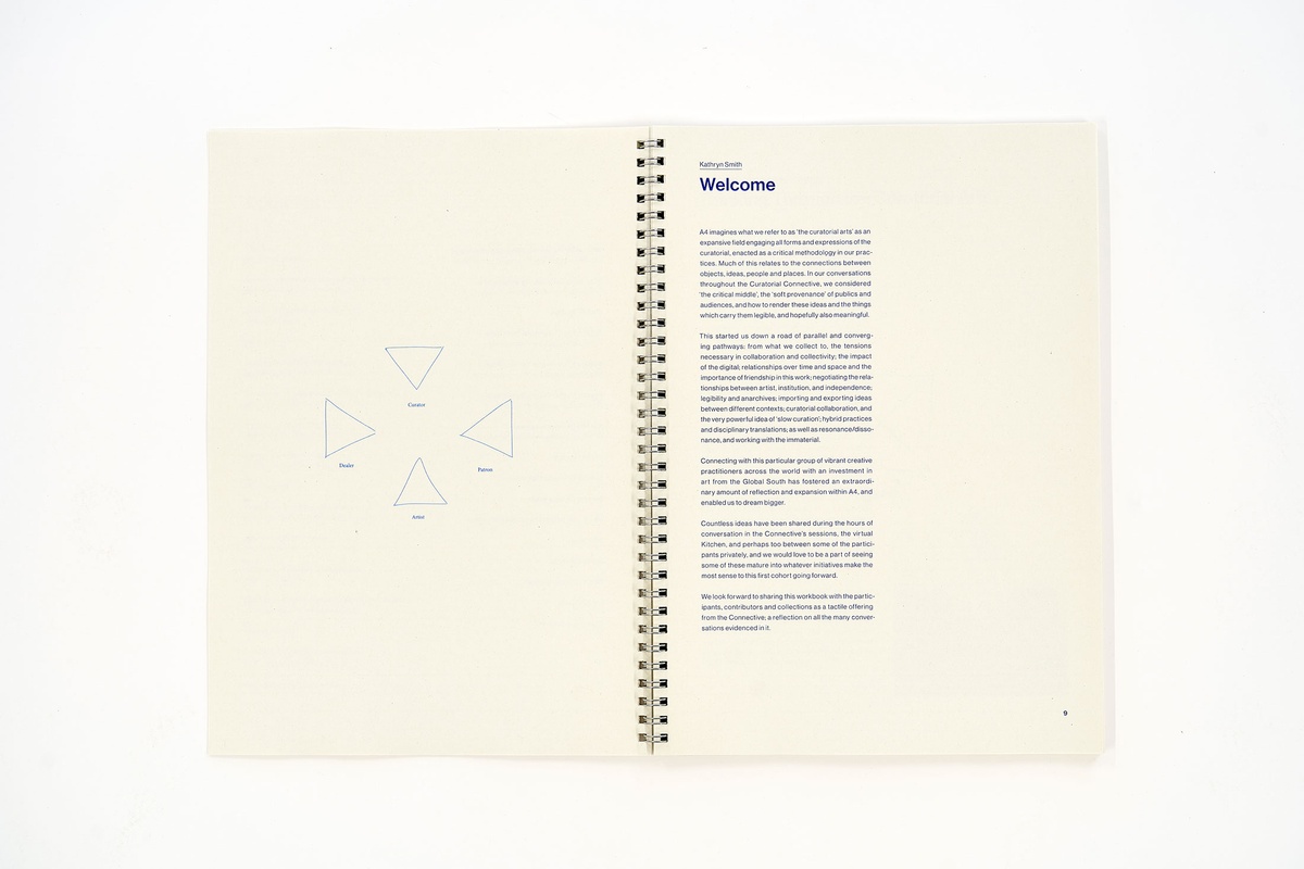 Made after the online programme concluded, the Curatorial Connective Workbook draws together summaries and insights from the weekly sessions and the participating curators’ presentations. Sent via post to each curator – from cities in the USA to Taipei, Nairobi and Dakar, among others – the Workbook offers a physical record of the Connective’s digital engagements.