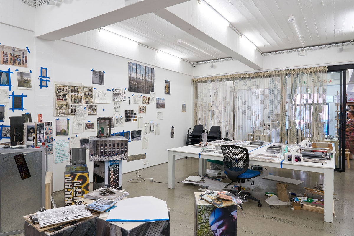 A4's Reading Room is an adaptable space attached to A4's Library and Archive. Intended to solve for form depending on its required function, it is at once a bookish environment for reading and contemplation and a place to unpack artists' archives. The Reading Room's inter-leading doors become walls when locked to create a stand-alone spatial research studio that hosts residents and practices site-specific work that most often is connected to packing and unpacking projects as a form of research.