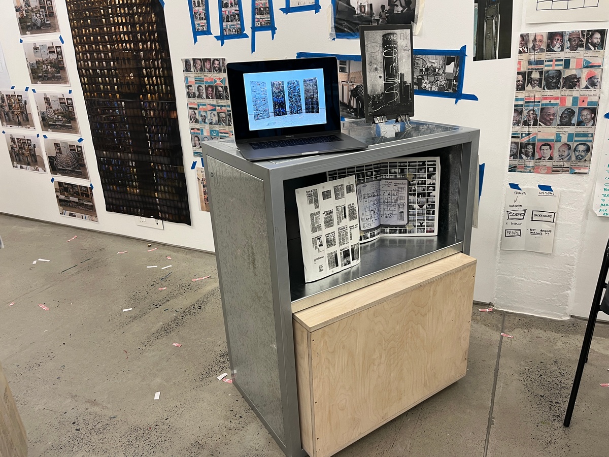 The acquisition of the Ponte City exhibition archive by SFMOMA prompted the artists to think about sharing and storage techniques for these kinds of materials. The design strategies for these four book towers were first developed from the installation of book dummies in a tower-like crate for display on Sean O’Toole’s research exhibition Photo book! Photo-book! Photobook! at A4 Arts Foundation in 2021.