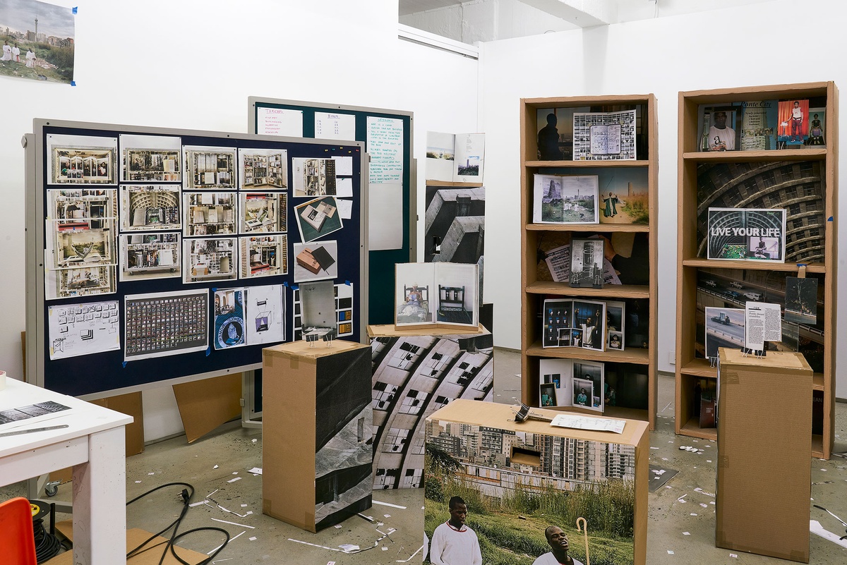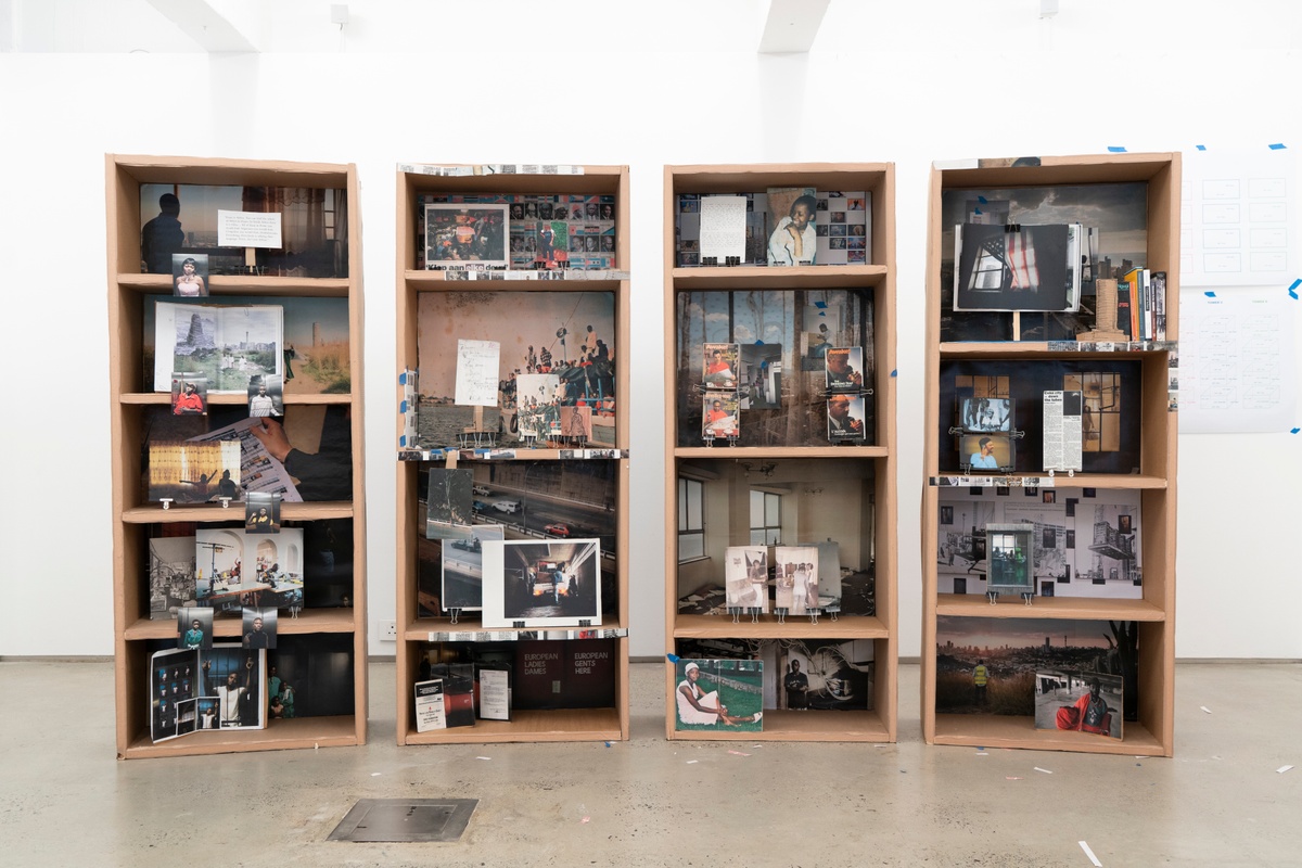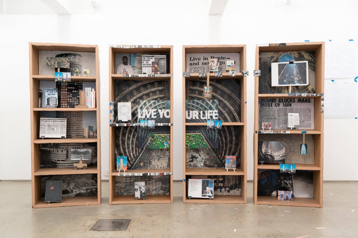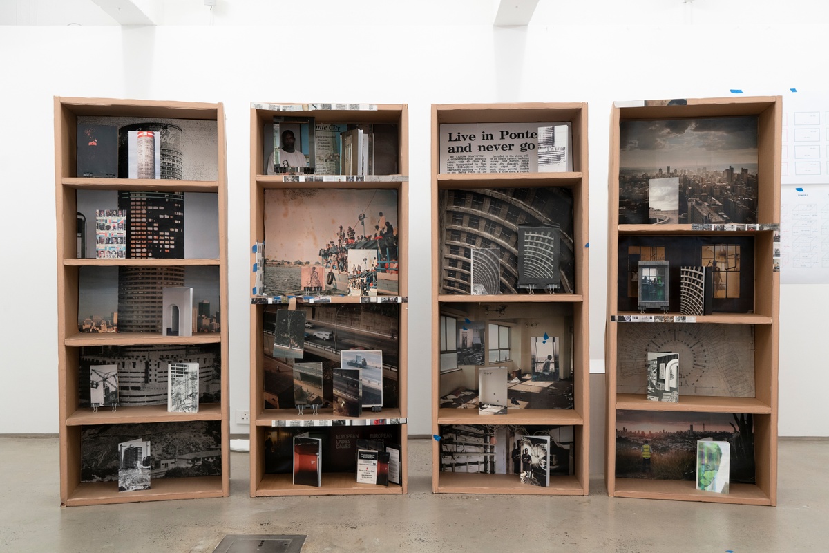 The project presents a complex narrative about the social history of Johannesburg and a case study of the collision between modernist architecture and apartheid. Working with the material from the project prompts thinking about the relationship between buildings, imported ideologies and human movement in the Global South. The book towers’ modular design invites arrangement and use by the viewer. Strategies for display and form follow function, where thematic threads that are relevant across locations and ecologies are ‘unpacked’. These might be: Bookmaking; Narrative; Photography; Migration; Layering; Architecture; Community; Making; and How to Be an Artist, among others.