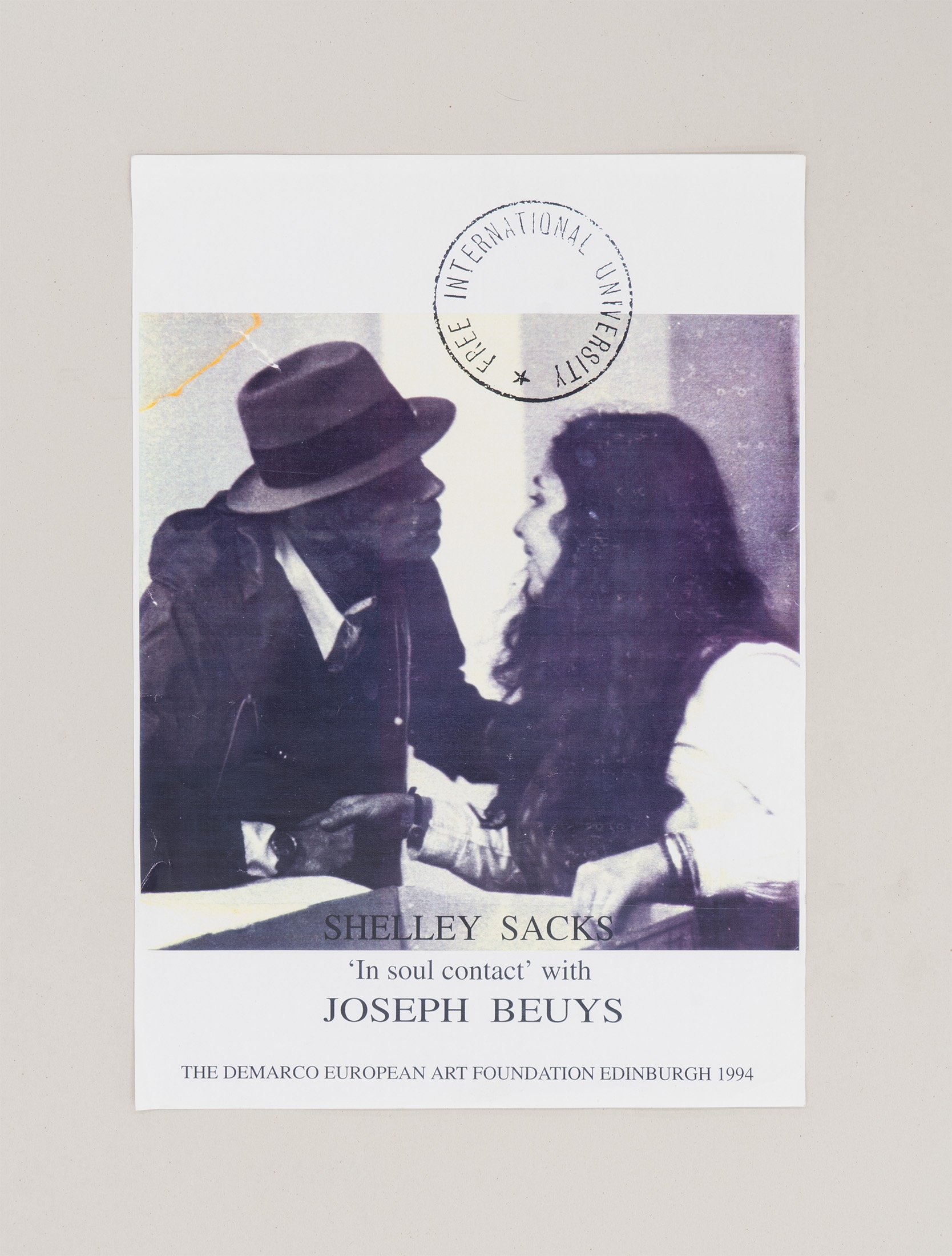 Poster: Shelley Sacks ‘In soul contact’ with Joseph Beuys, The Demarco European Art Foundation, Edinburgh, 1994. Image courtesy of A4 Arts Foundation.