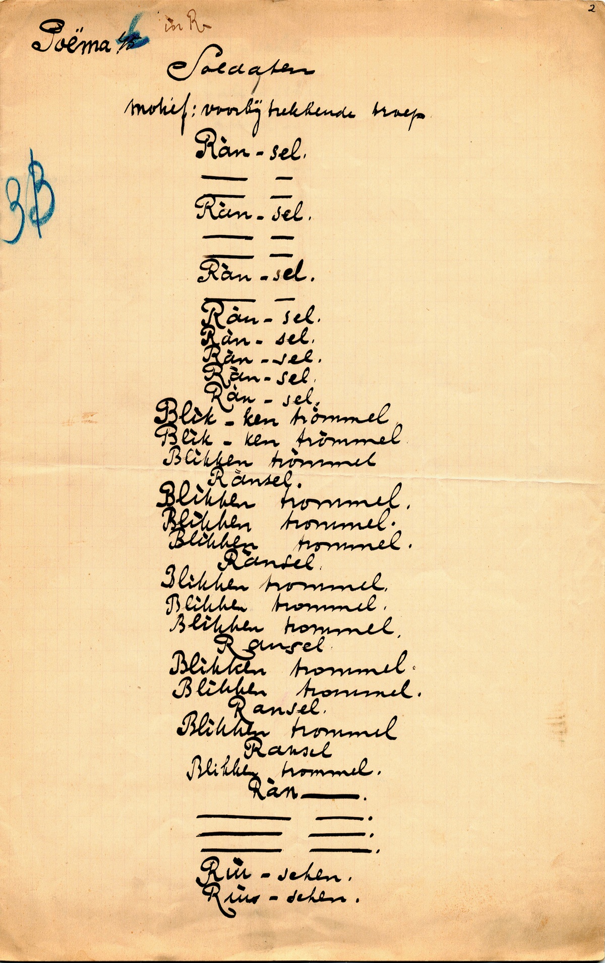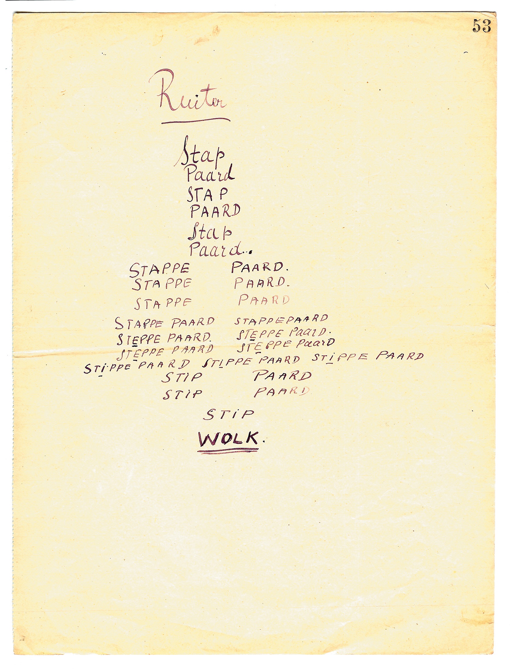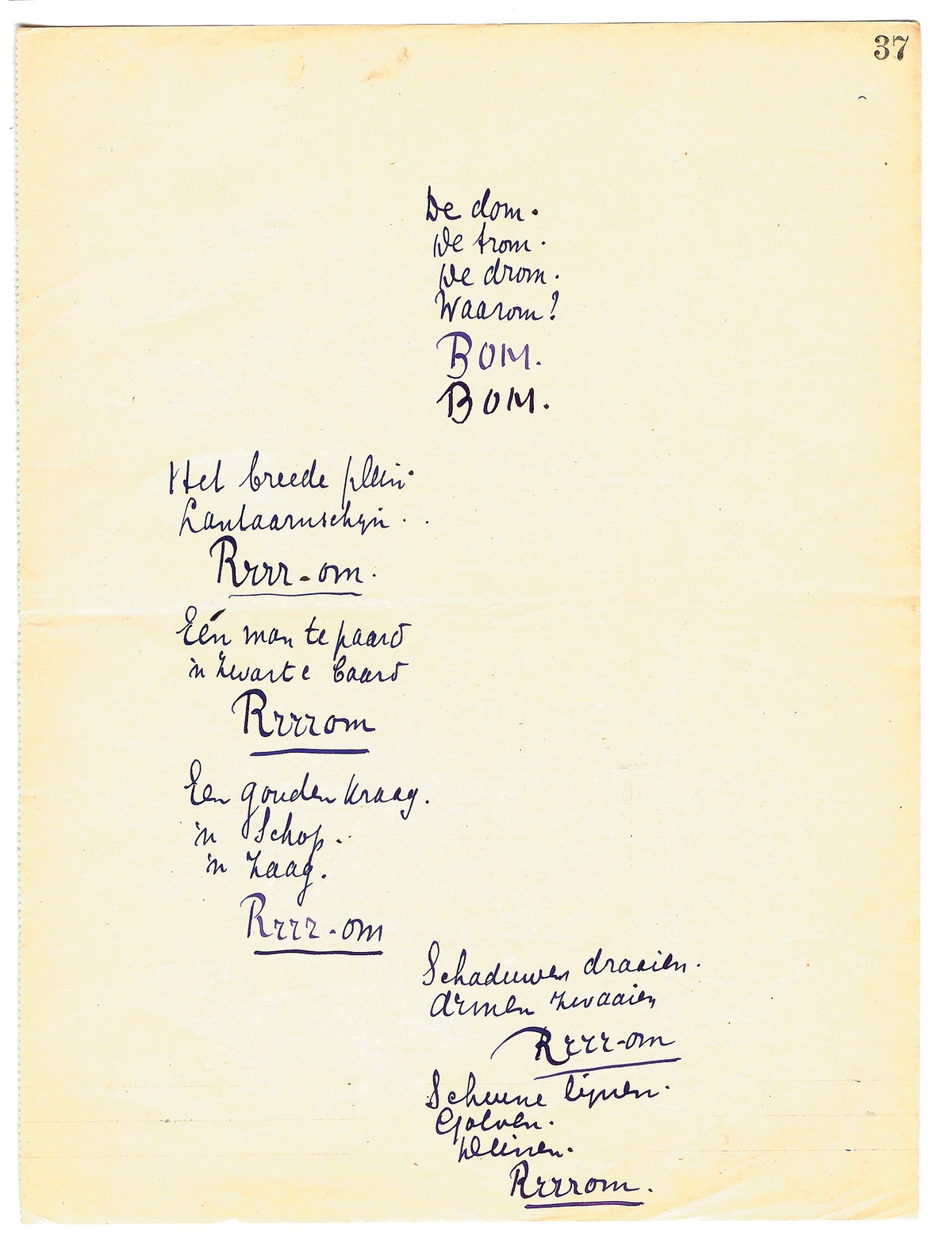 Ephemera: Theo van Doesburg, a facsimile of poetry notebook showing visual qualities of concrete poetry. The manuscript was considered even at draft stage, before final layout and typesetting. Courtesy of Van Doesburg Archives, Den Haag.