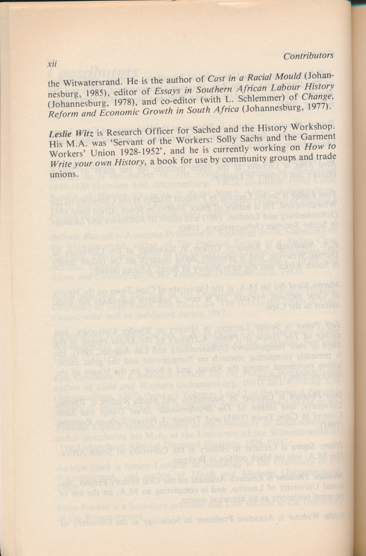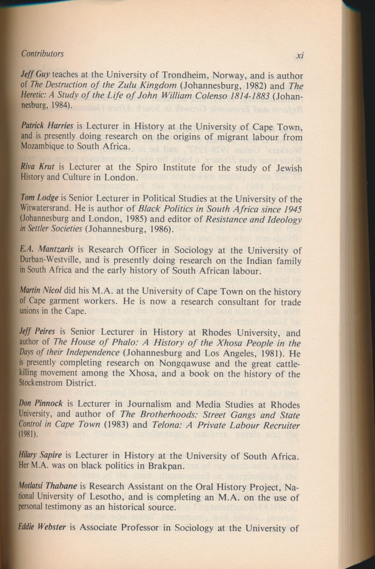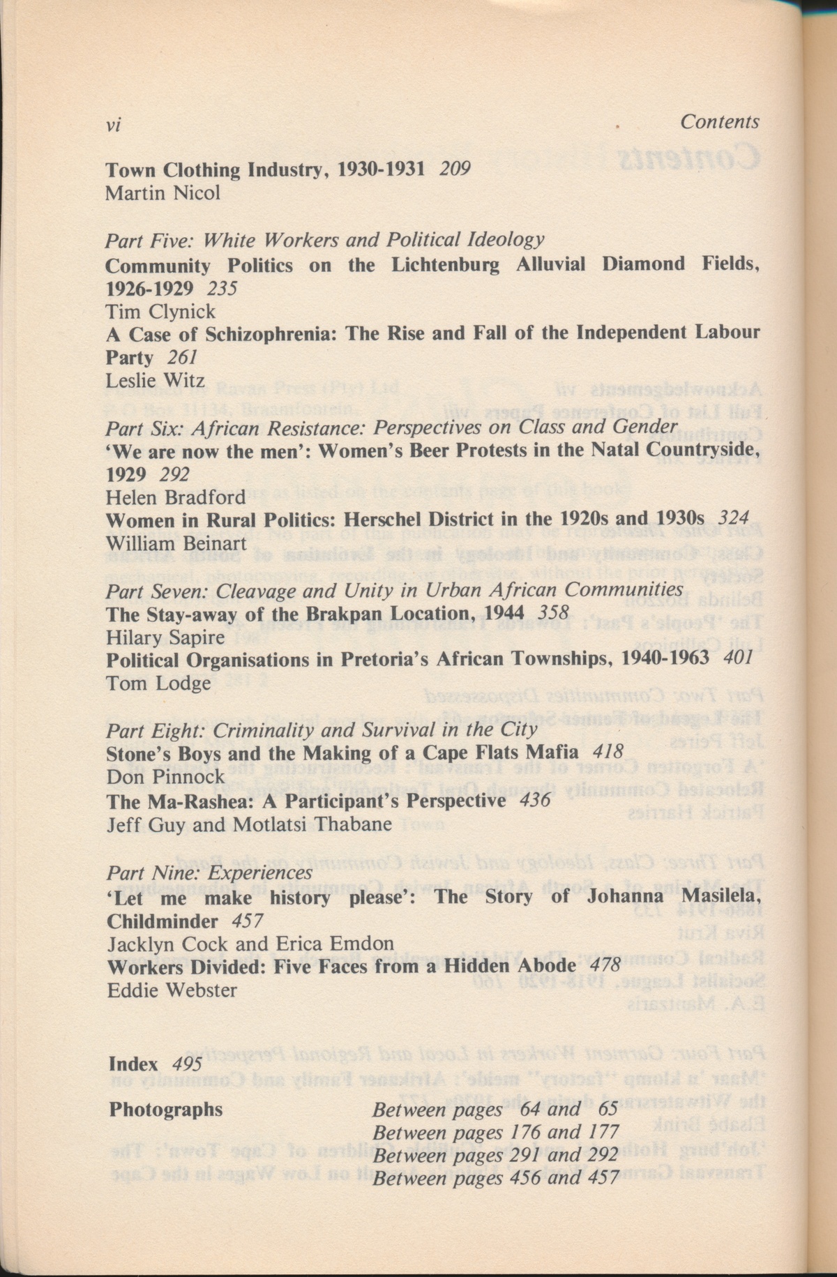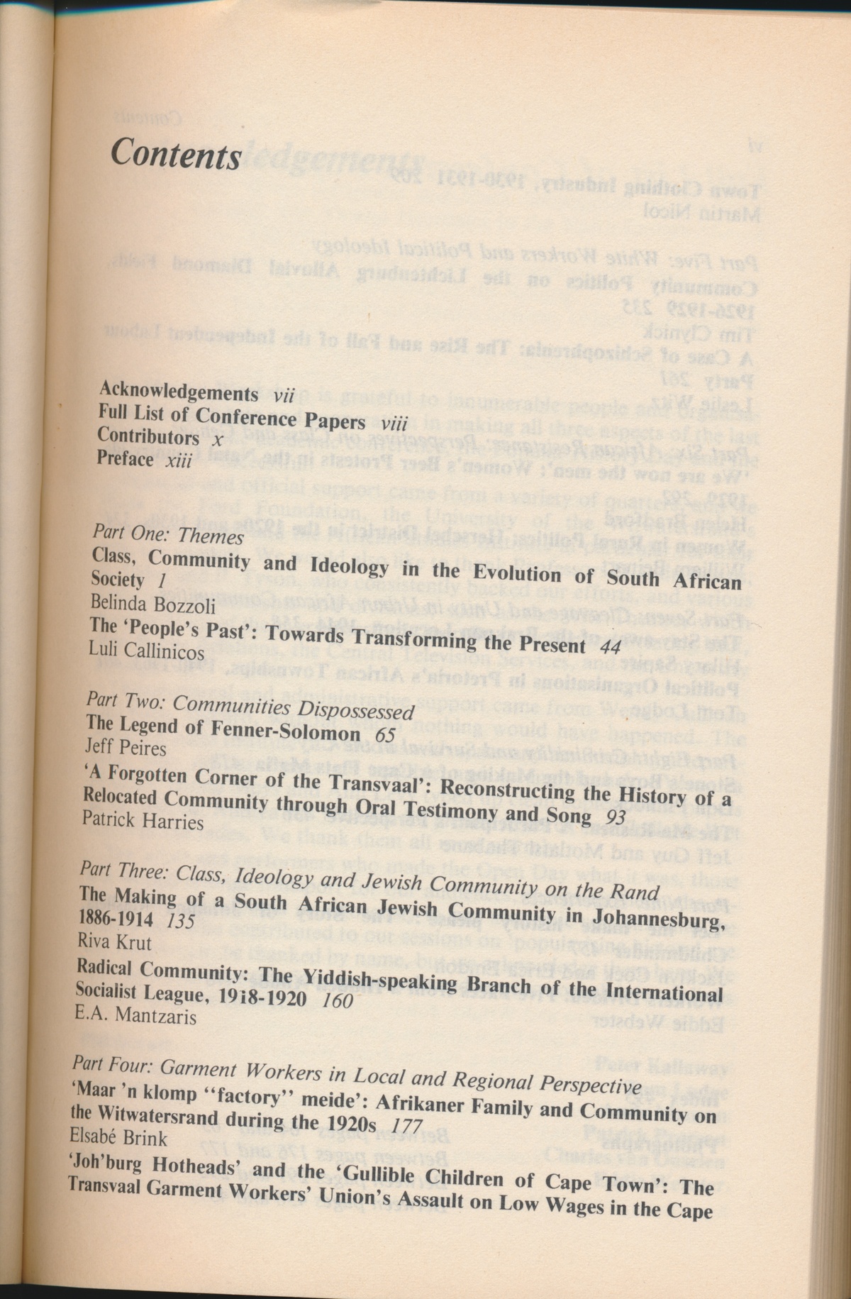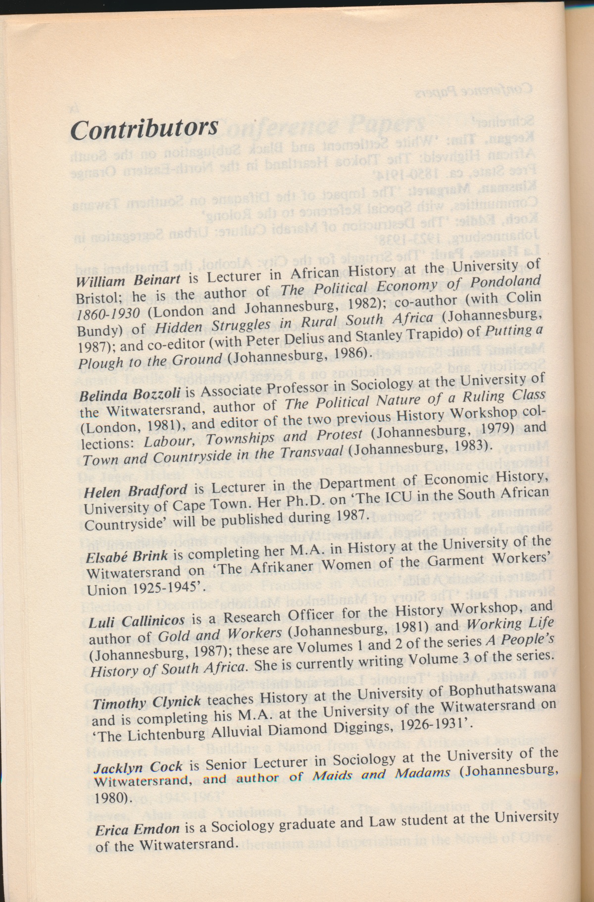Bozzoli, B. (eds.) (1987) Class, Community and Conflict: South African Perspectives. Johannesburg: Ravan Press.