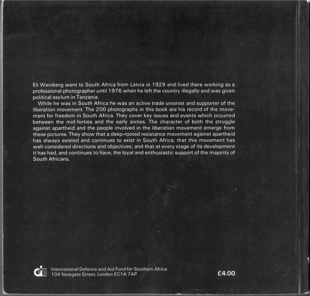 Weiberg, E. (1981) Portrait of a People: A personal photographic record of the South African liberation struggle. London: International Defence and Aid Fund for Southern Africa.