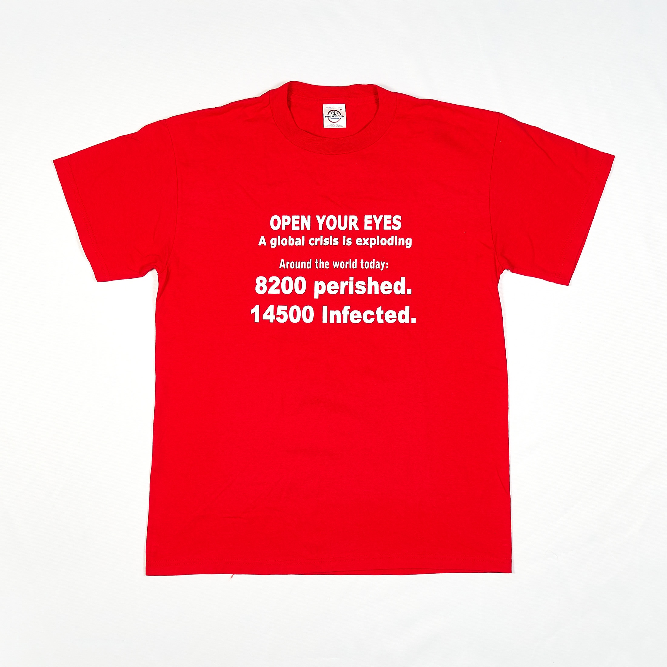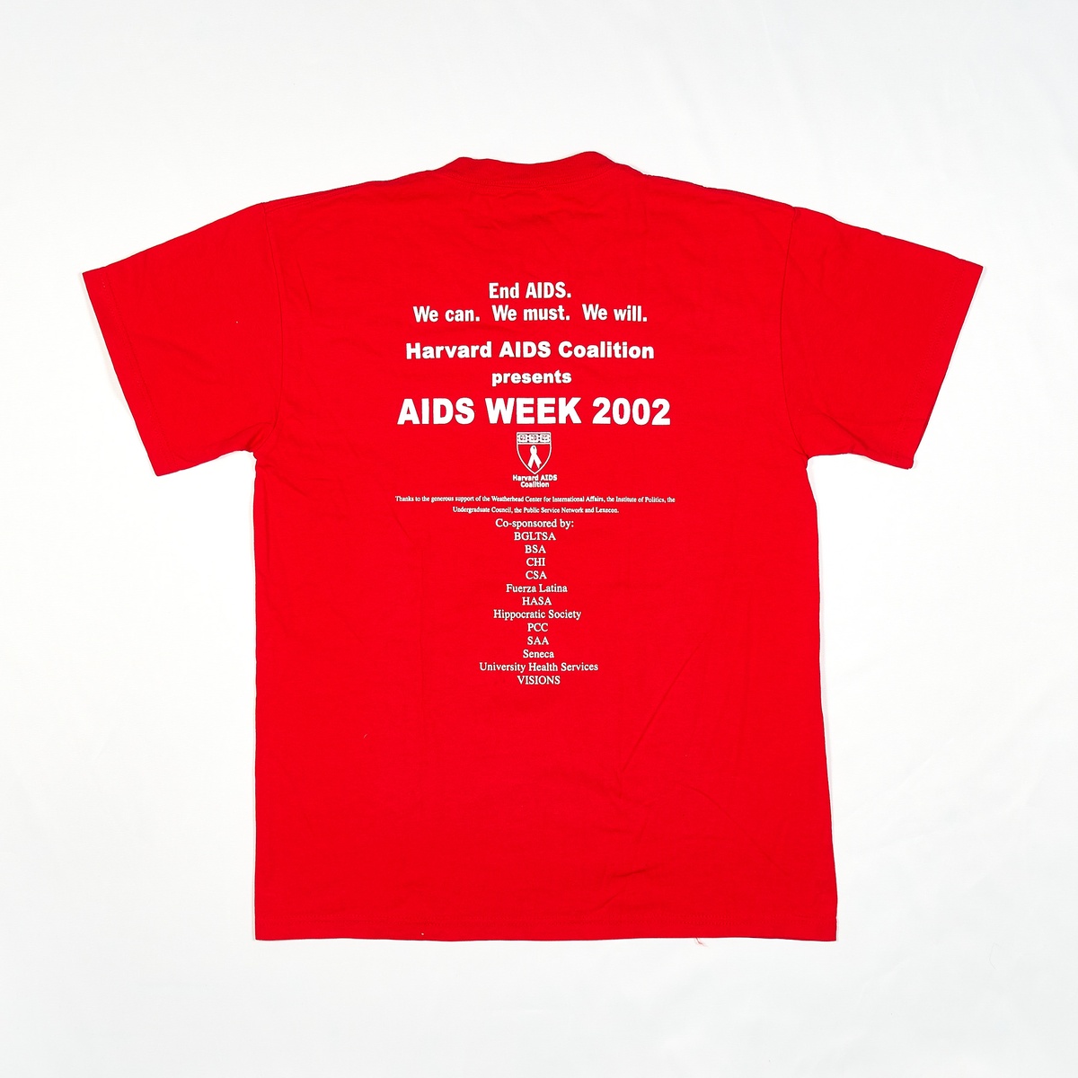 This t-shirt was made for AIDS Week 2002, a week of programming that included panel discussions, teach-ins, candlelight vigils, and social events.