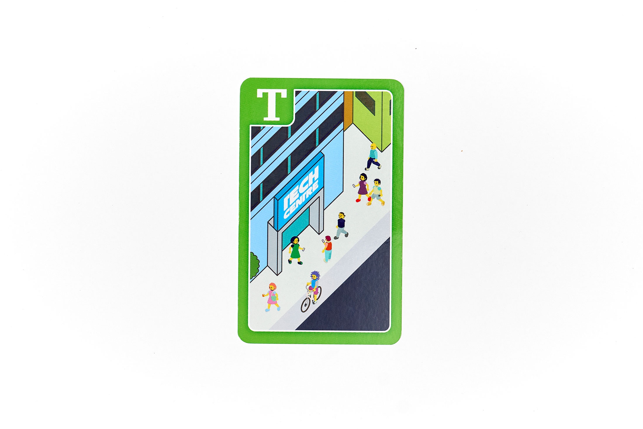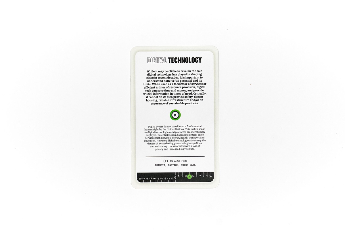 Card: Digital Technology (2024), Urban Canvas Deck Main, Shift Game Set Prototype. 8 x 13 cm. Image courtesy of A4 Arts Foundation.