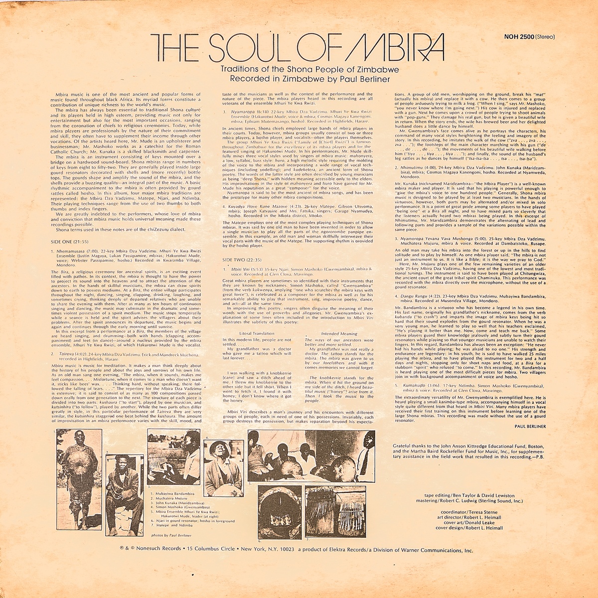 Paul Berliner, in The Soul of Mbira: Traditions of the Shona People of Zimbabwe (1973), writes: