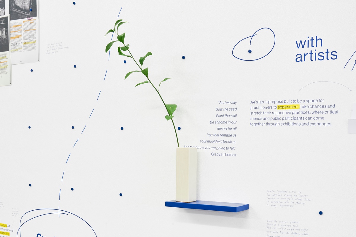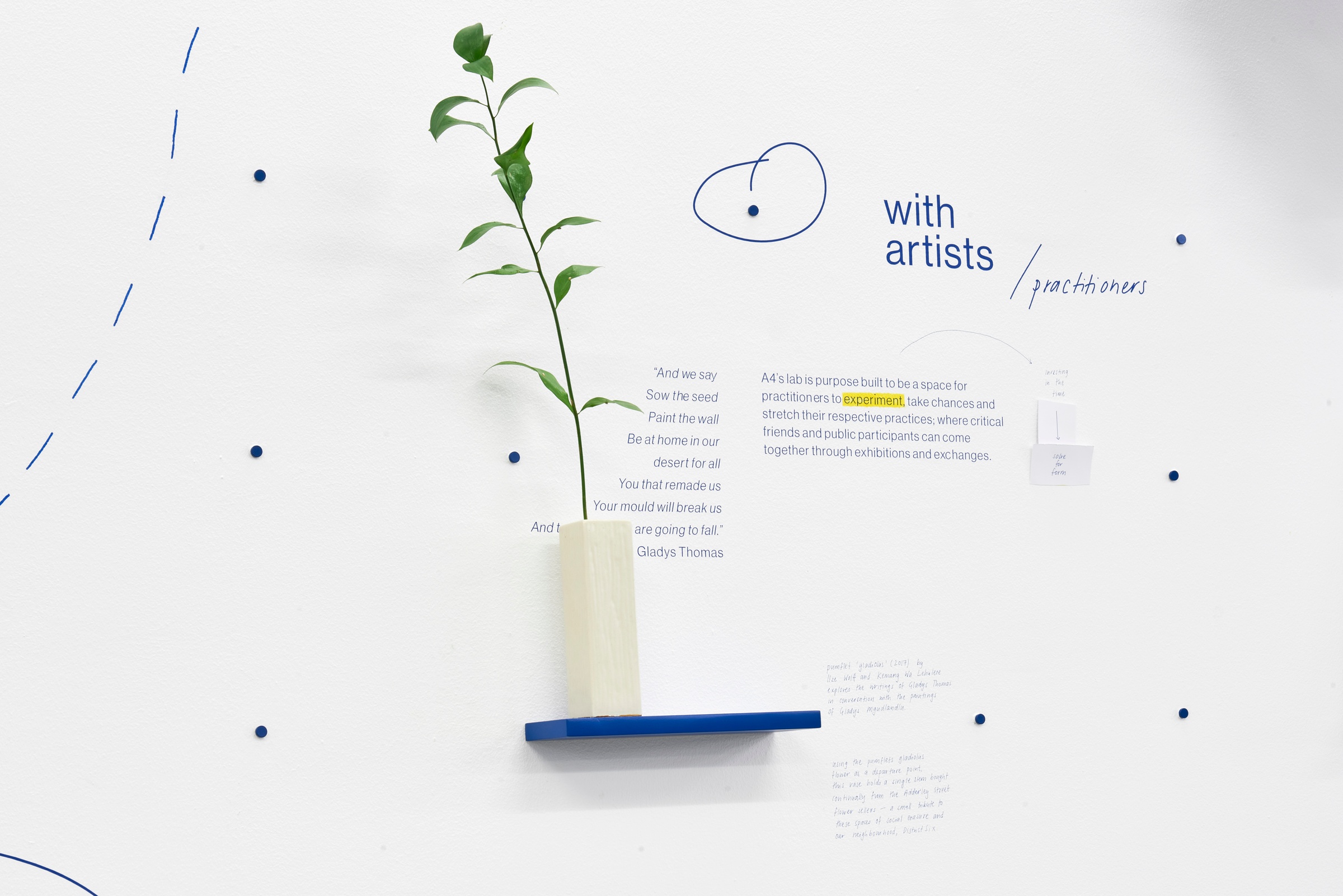 Cabinet: Pumflet Gladiolus flower on Bella Knemeyer’s About Wall, February 2022. Image courtesy of A4 Arts Foundation.