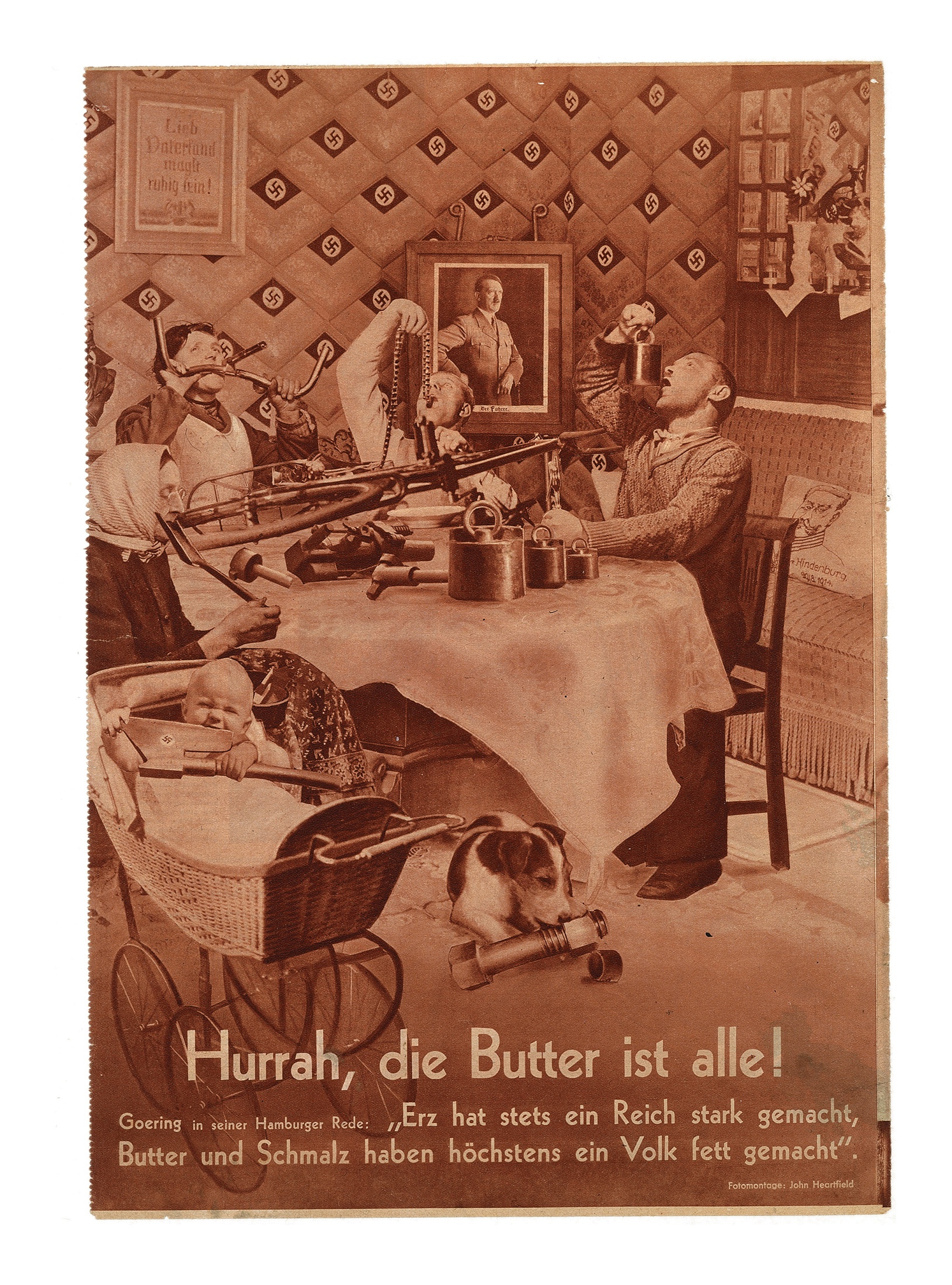 Poster: John Heartfield, Hurrah, die Butter ist alle! / Hurrah, the butter is finished! (December 19, 1935). Photomontage. Originally published in Arbeiter llustrierte Zeitung, Jg. 14, no. 51. 38 x 27 cm. Courtesy of Akademie der Kϋnste, Berlin, Kunstsammlung.