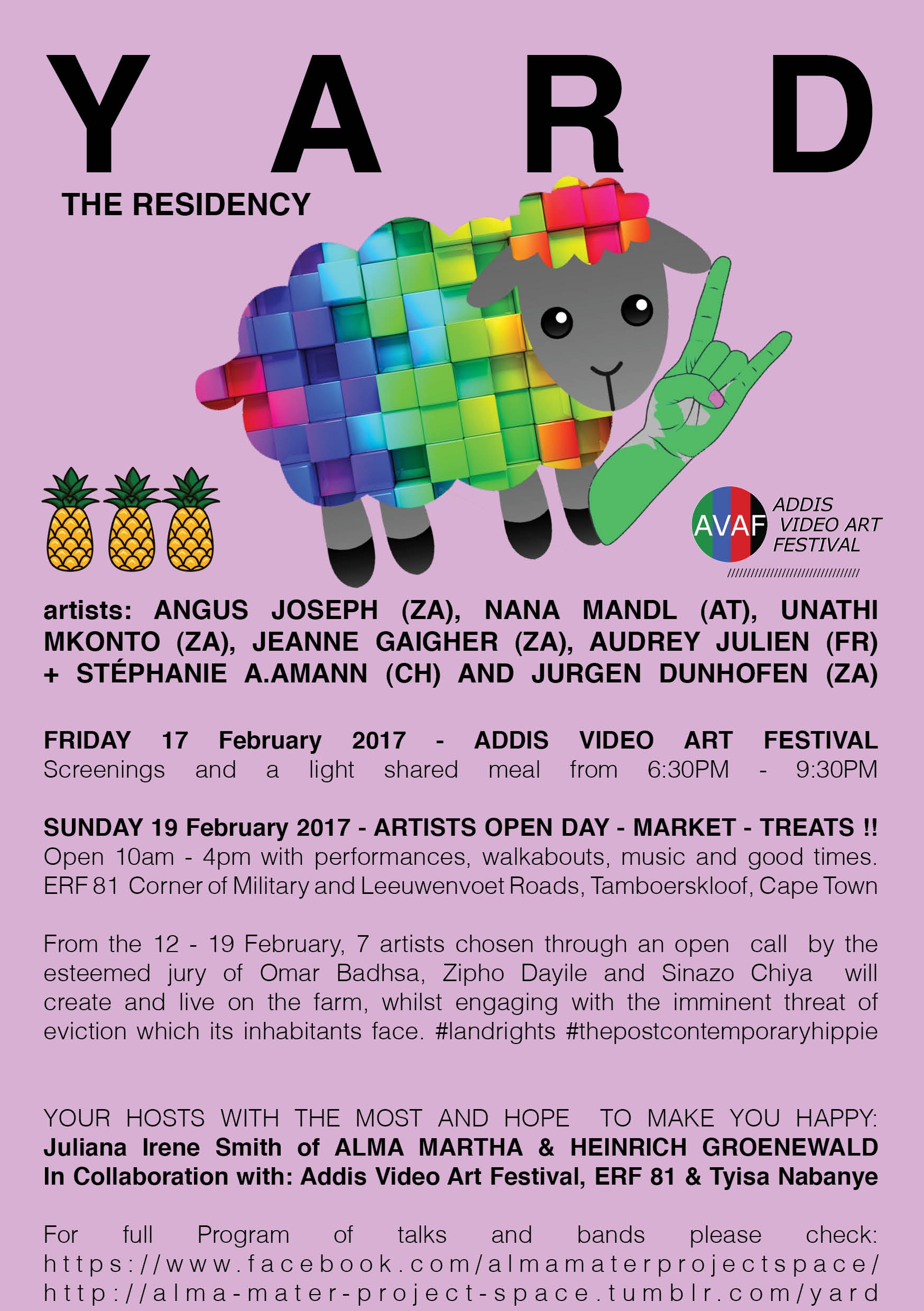 Poster: Yard (the residency) by Alma Martha, Erf 81, Cape Town, February, 2017. Image courtesy of Juliana Irene Smith.