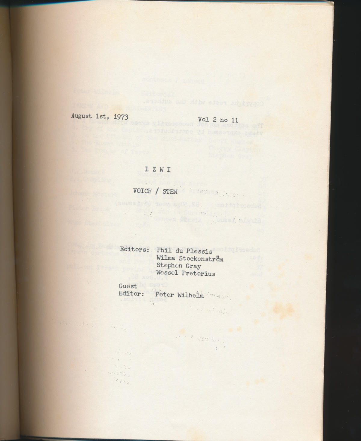 Du Plessis, P., Gray, S., Pretorius, W., Stockenström, W. and Wilhelm, P. (eds.) ‘Stem/Voice’, Izwi, 2(11).