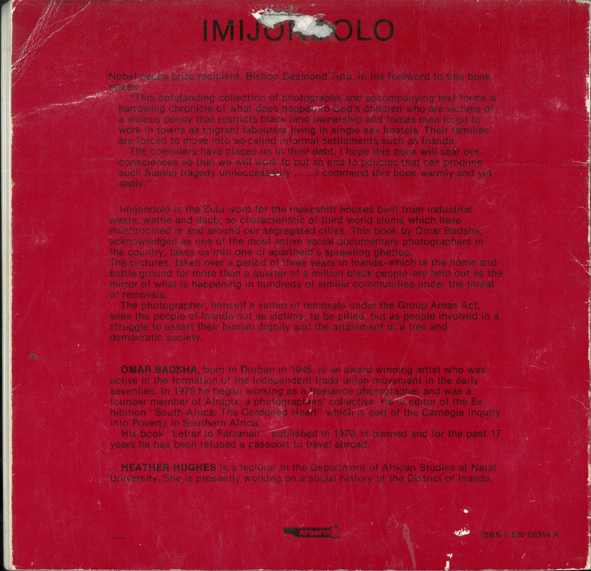 Badsha, O. and Hughes, H. (1985) Imijondolo: A Photographic Essay on Forced Removals in South Africa. Afrapix.