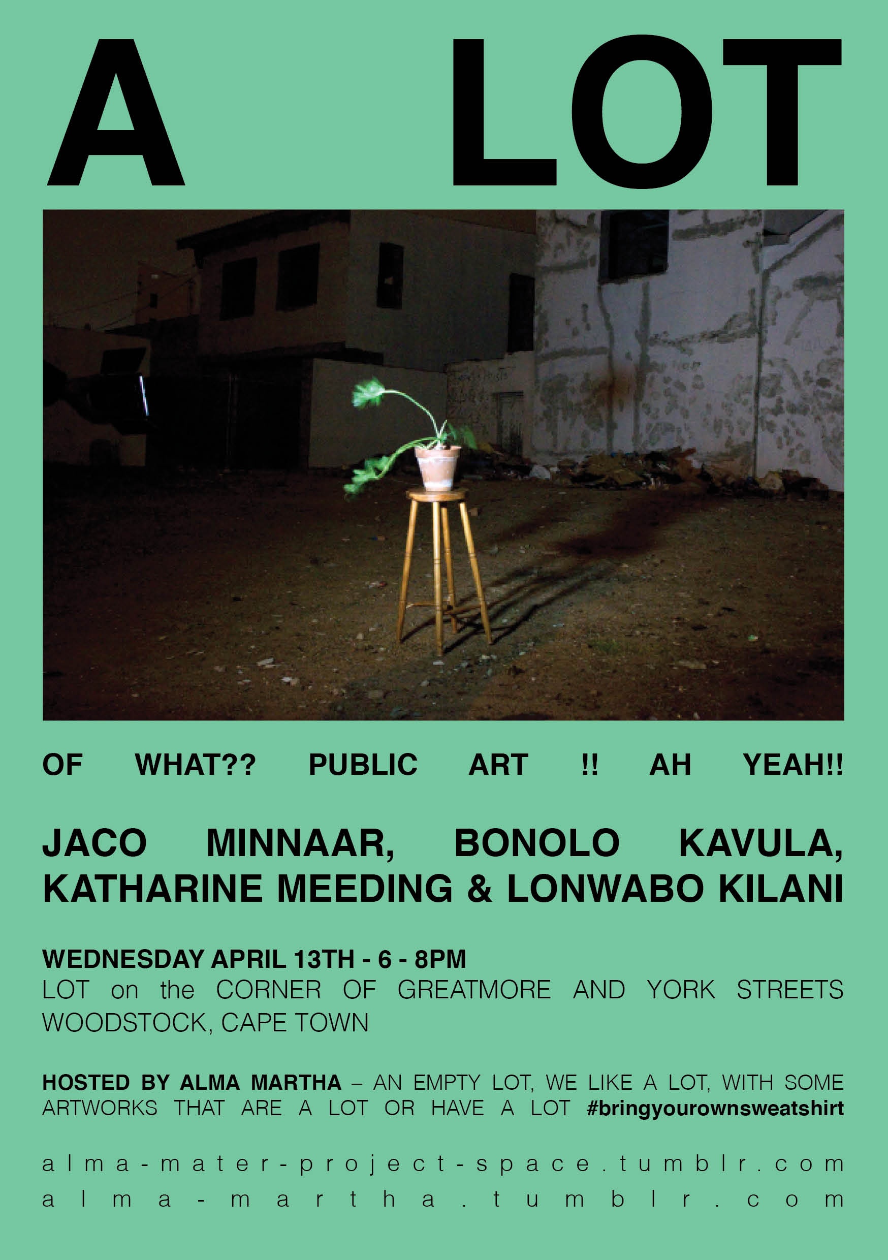 Poster: A Lot by Alma Martha, Woodstock, Cape Town, April 13, 2015. Image courtesy of Juliana Irene Smith.