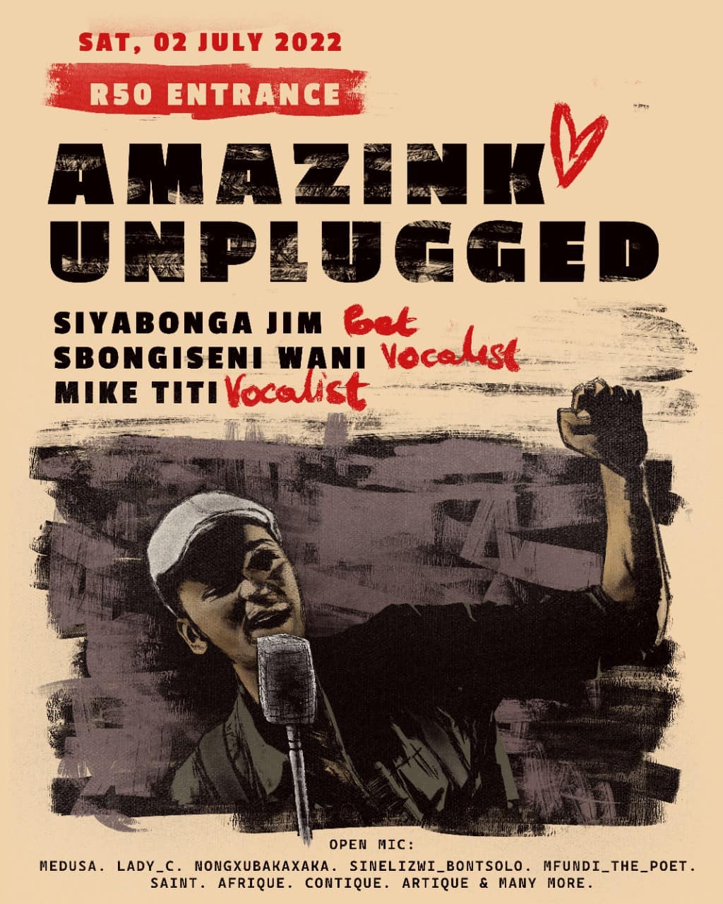 Poster: Amazink Unplugged Session, Amazink Live, Cape Town, July 2, 2022. Image courtesy of Khangelani Mgoqi.