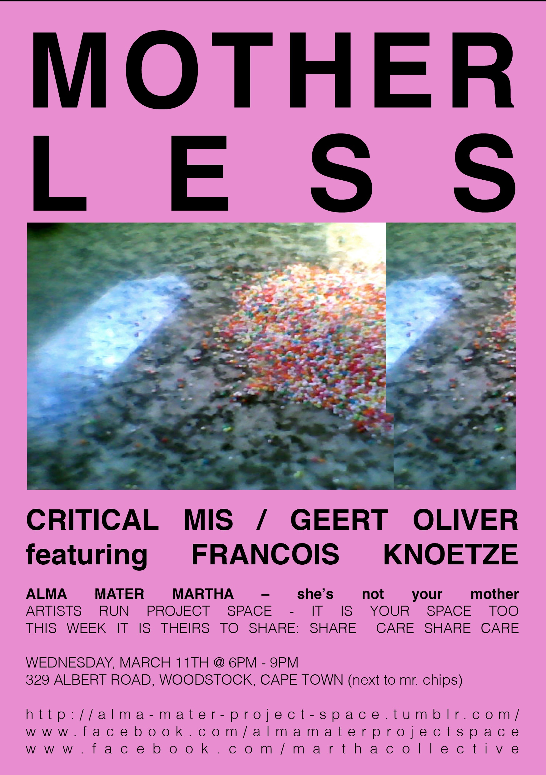 Poster: Motherless by Alma Martha, Woodstock, Cape Town, March 11, 2015. Image courtesy of Juliana Irene Smith.
