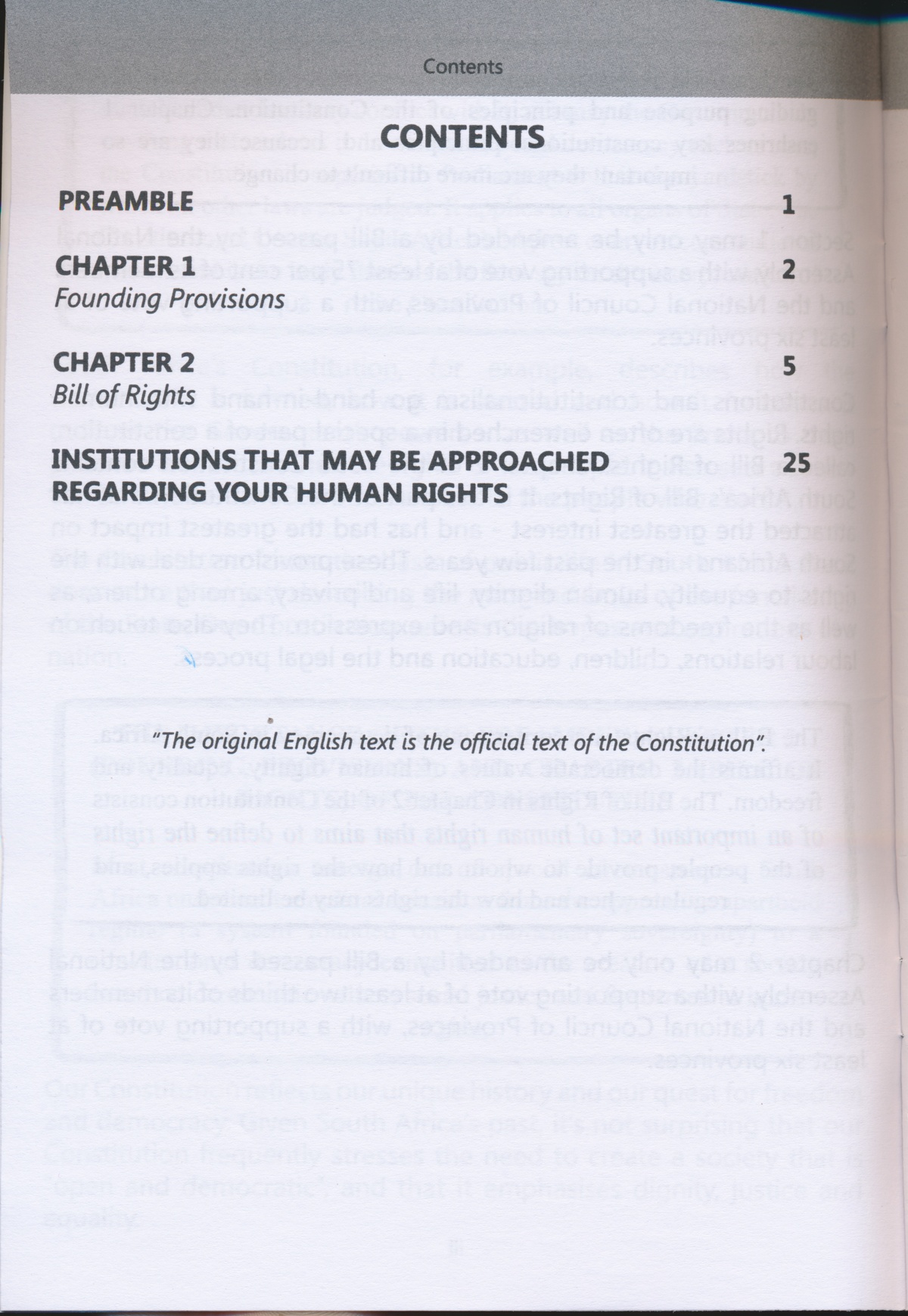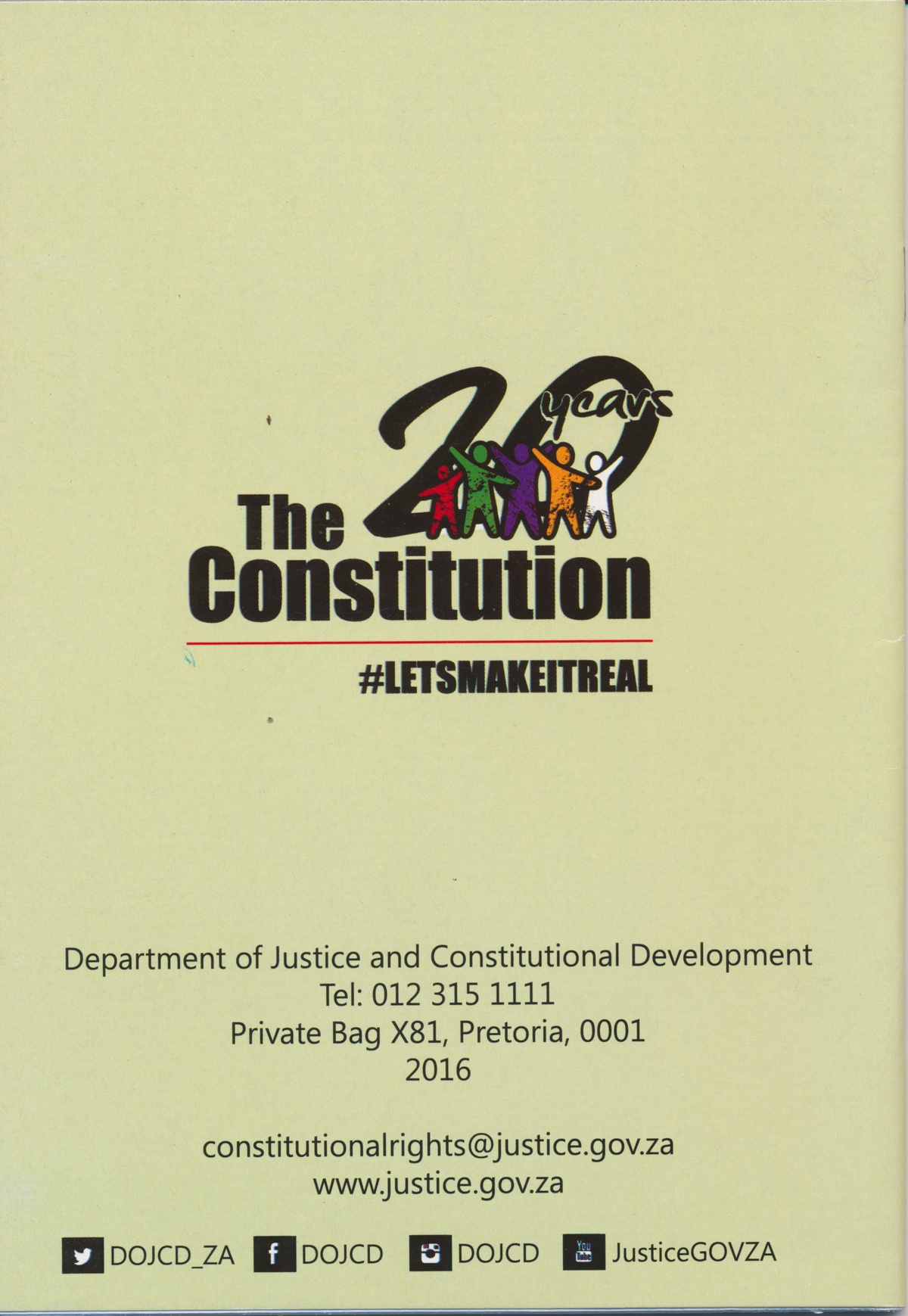 DOJCD (1996) The Basic Provisions of the Constitution: of the Republic of South Africa 1996, Made Easy for Learners. Pretoria: Department of Justice and Constitutional Development.
