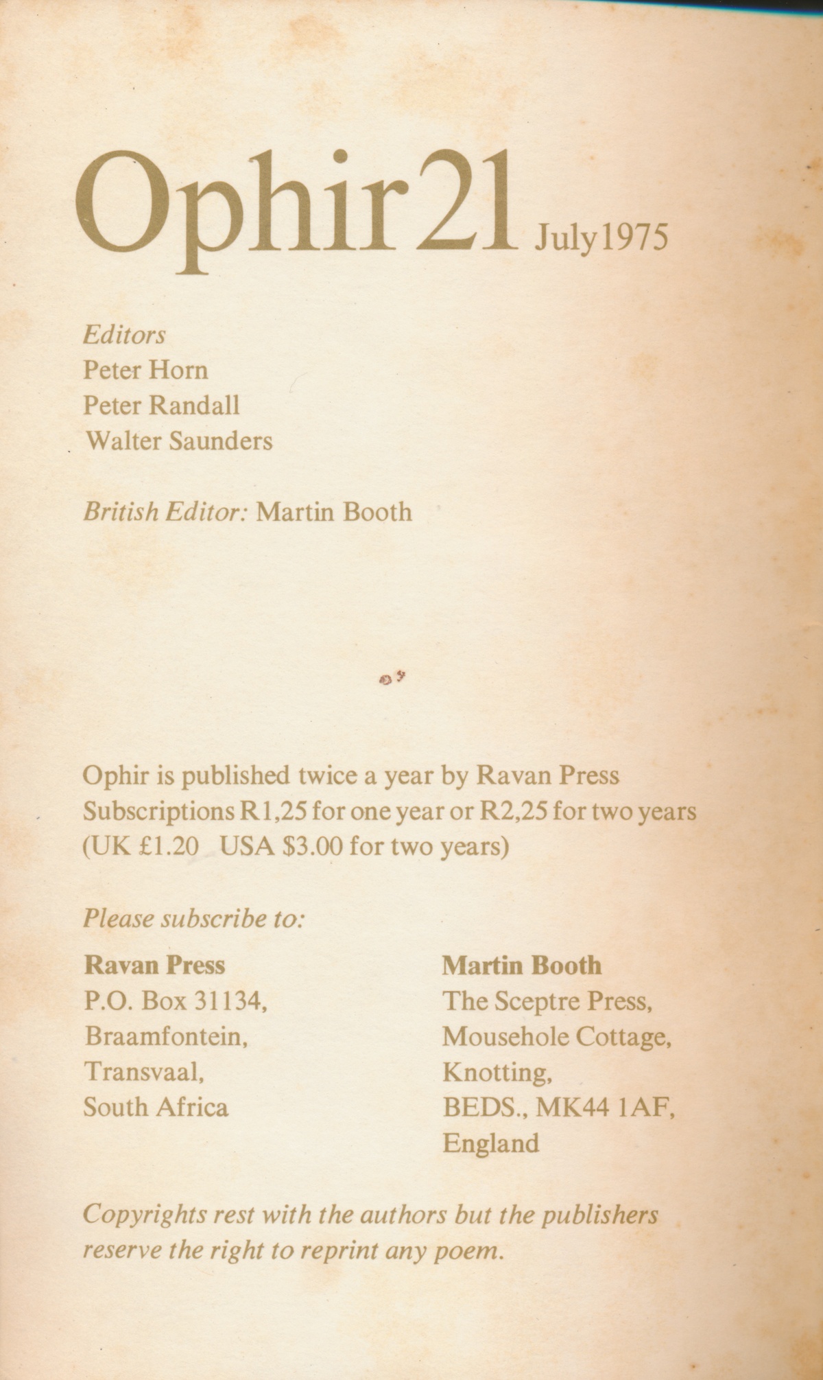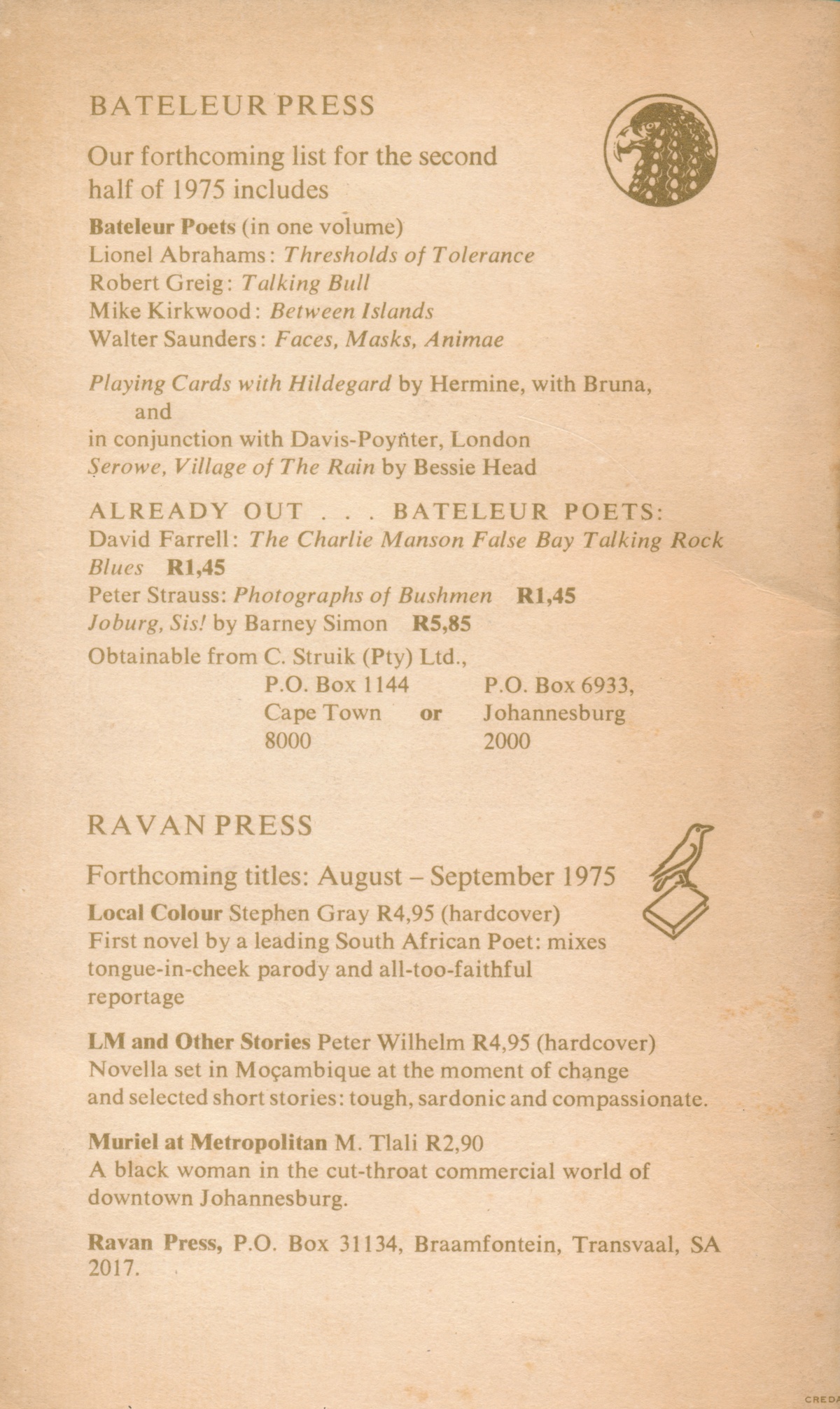 Mike Nicol Publisher Ophir Press, Ravan Press