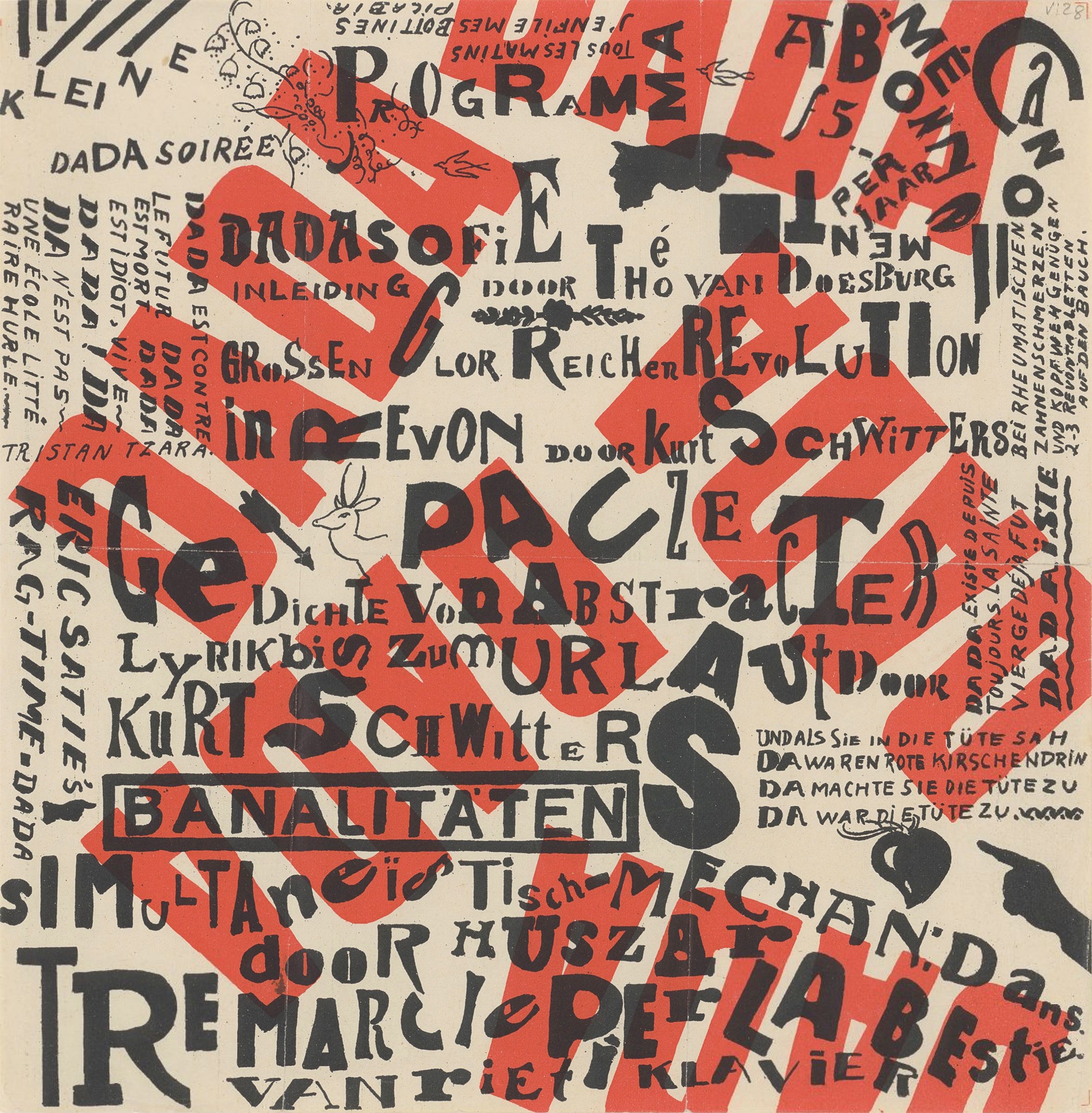 Poster: Small Dada Soirée (1923), The Hague, Netherlands. 30.3 x 30.3 cm. Courtesy of Kunsthaus Zürich, Dada-Sammlung.