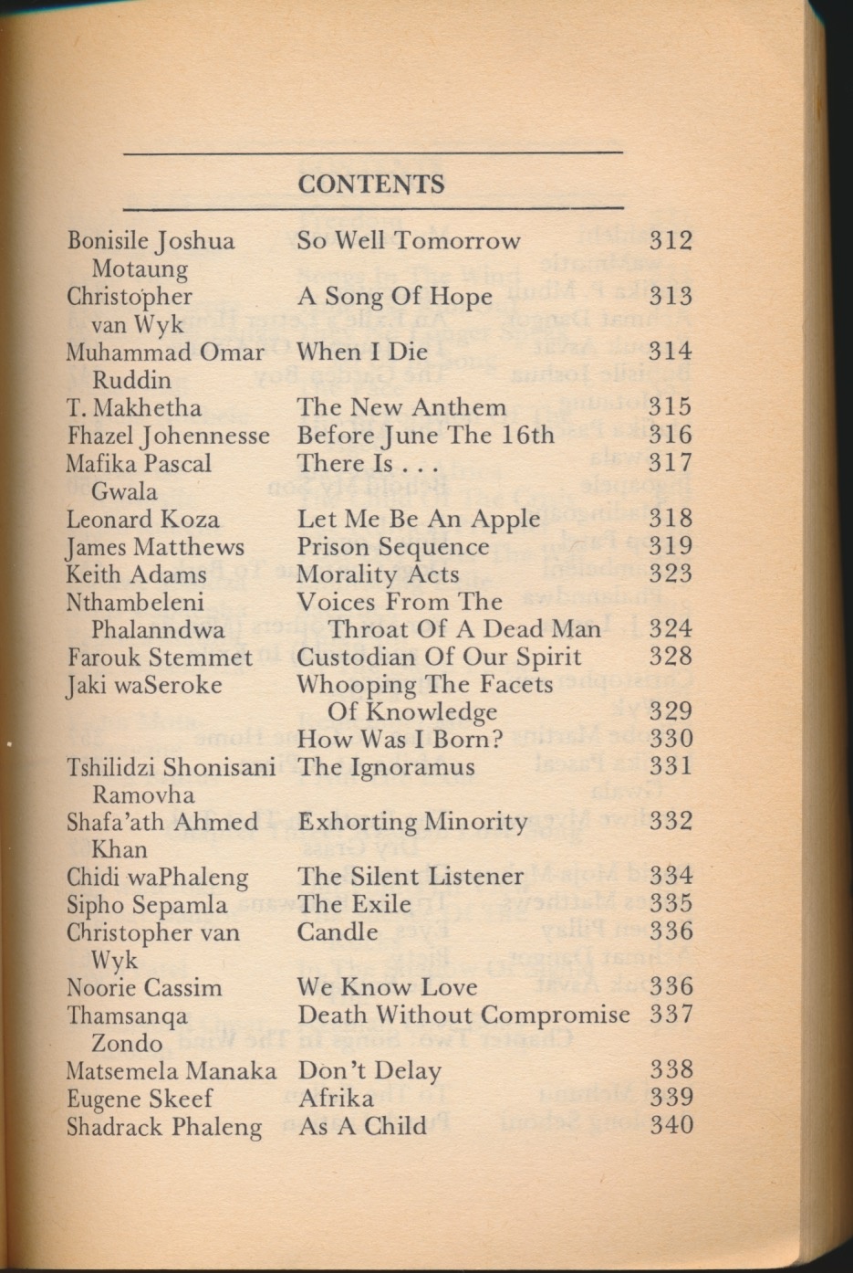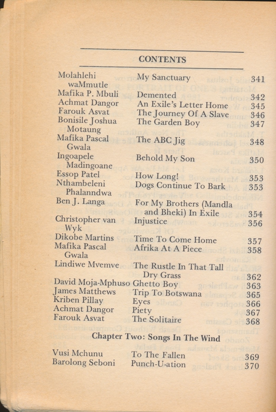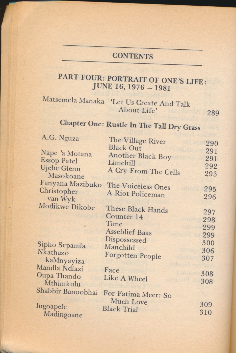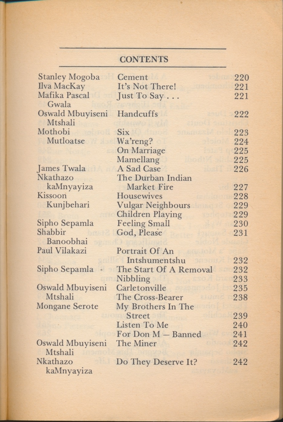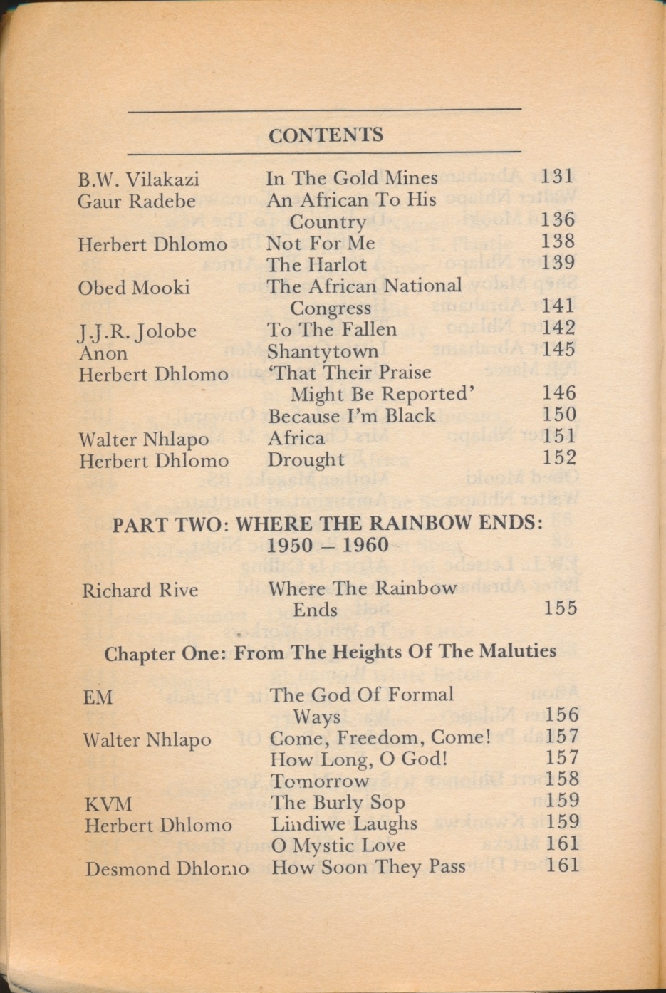 Couzens, T. and Patel, E. (1982) The Return of the Amasi Bird: Black South African Poetry 1891–1981. Johannesburg: Ravan Press.