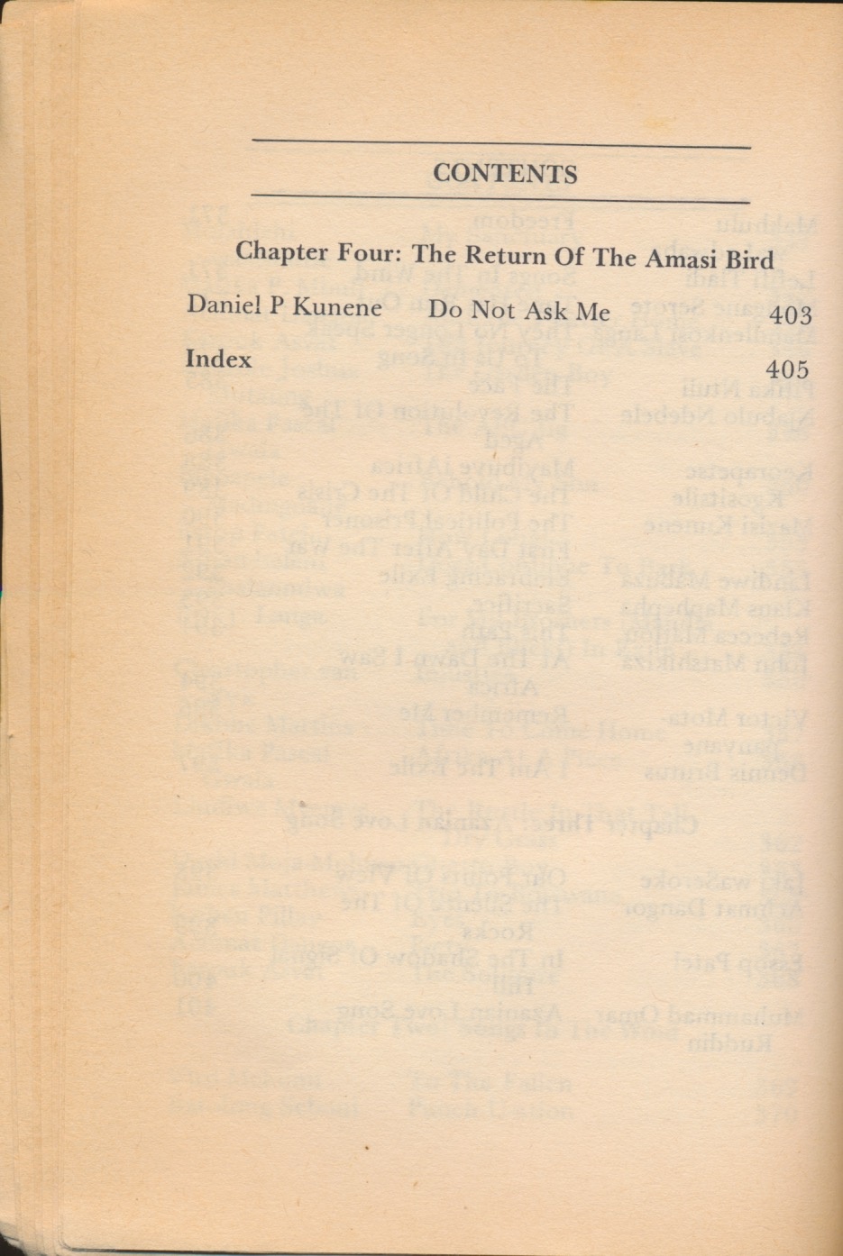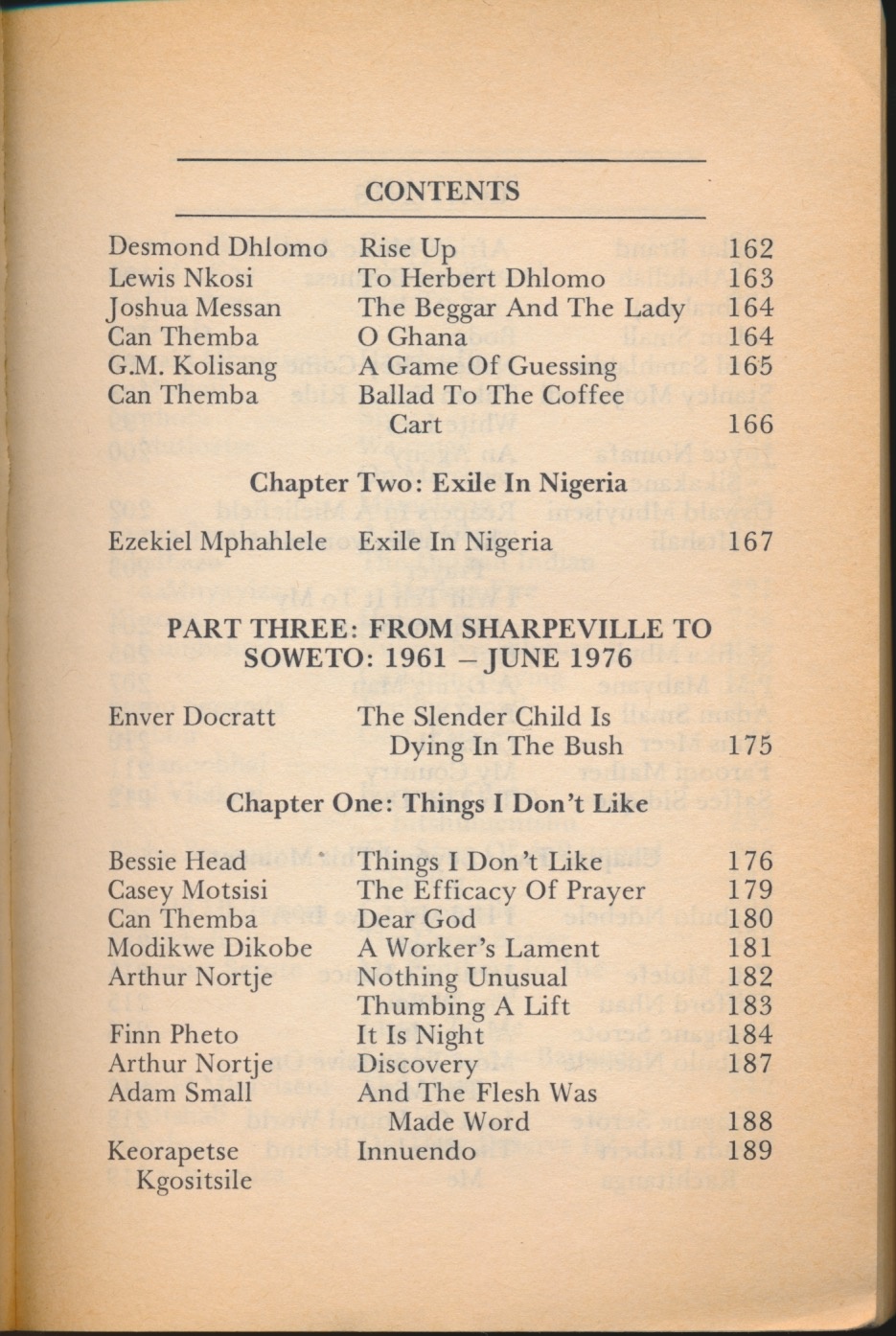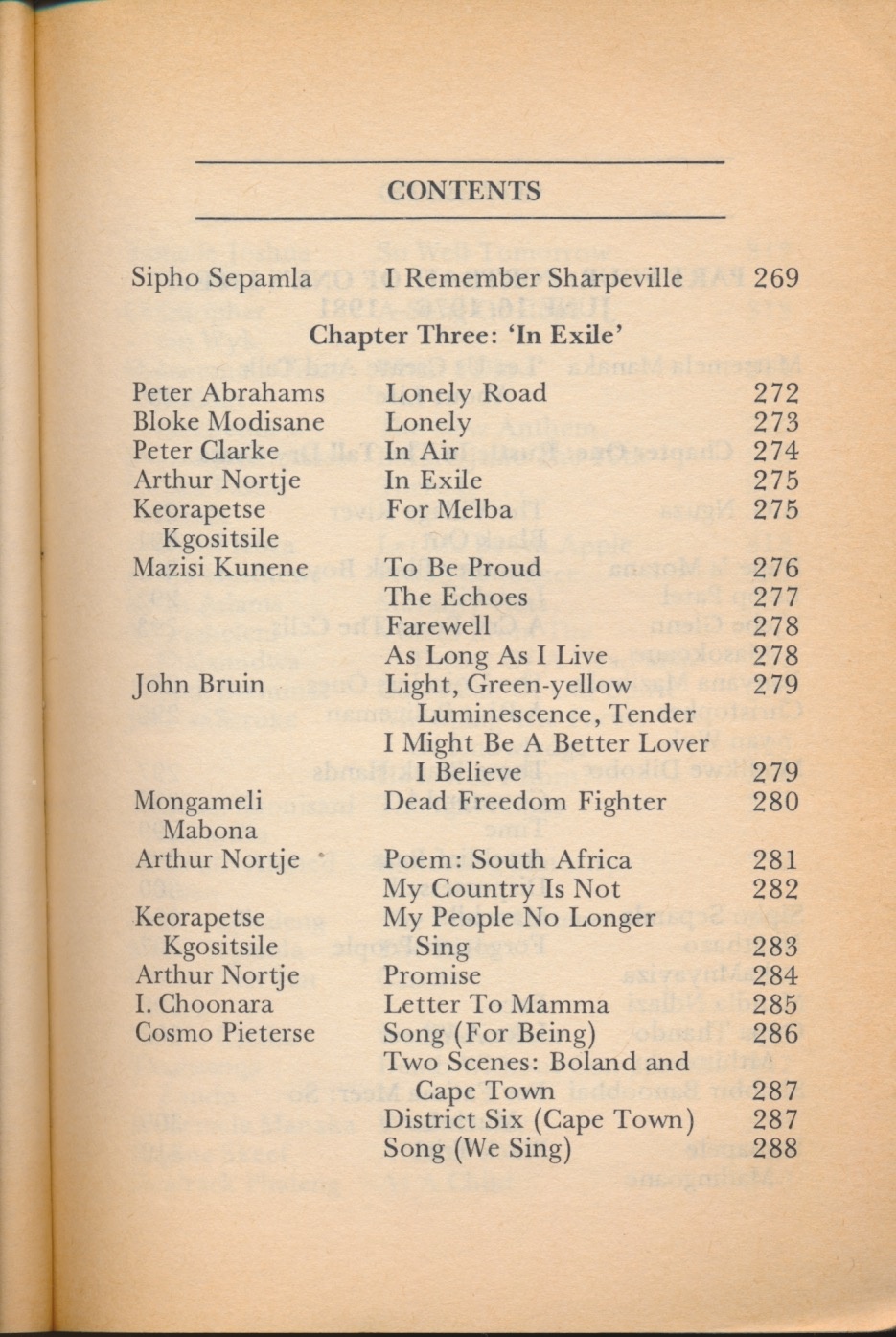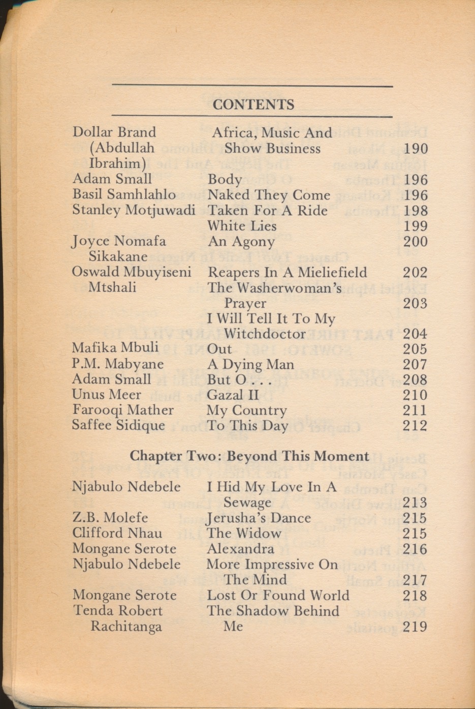 Couzens, T. and Patel, E. (1982) The Return of the Amasi Bird: Black South African Poetry 1891–1981. Johannesburg: Ravan Press.