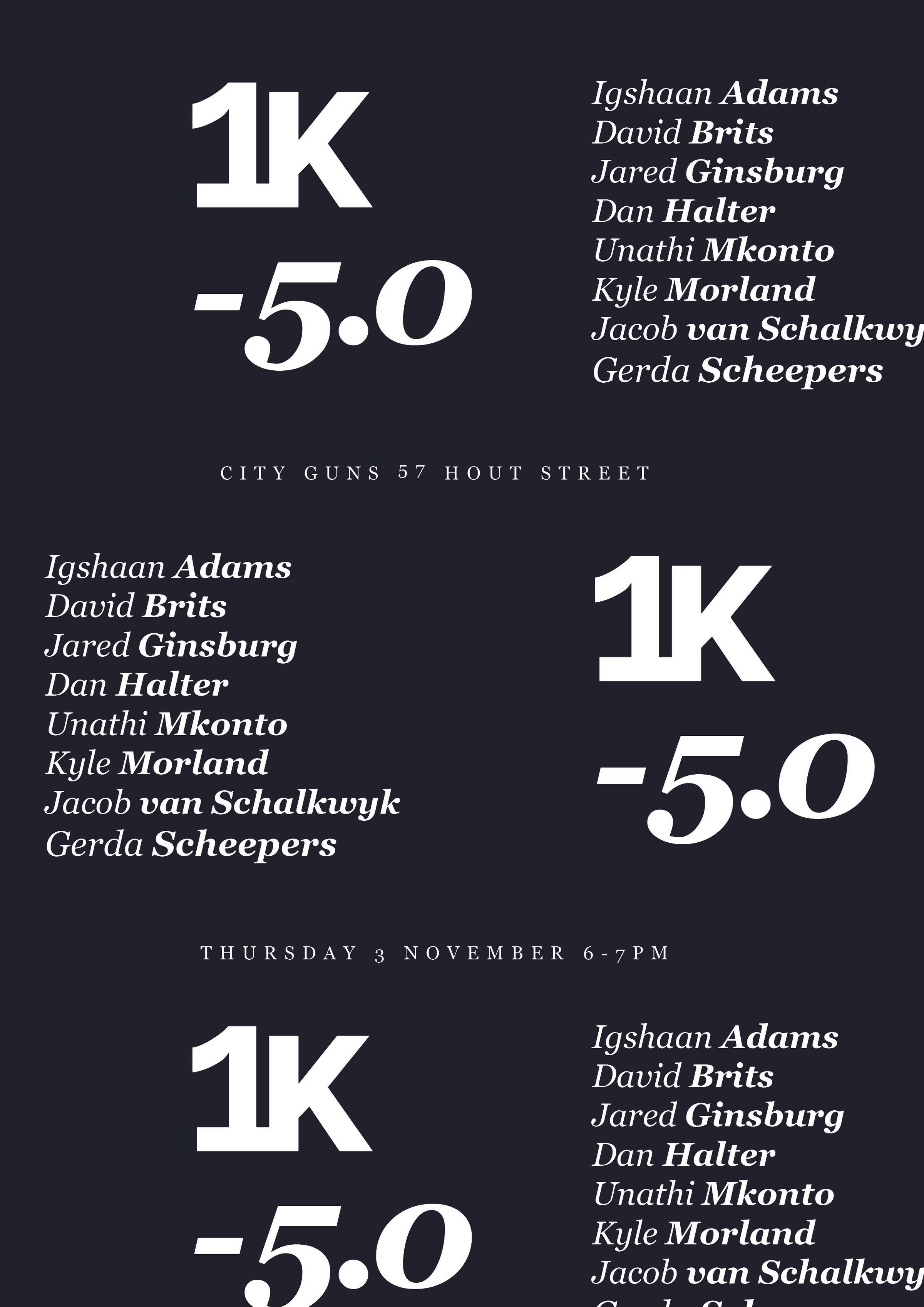 Poster: 1K Sale - 5.0, City Guns, 57 Hout Street, Cape Town, November 3, 2016. Image courtesy of David Brits.