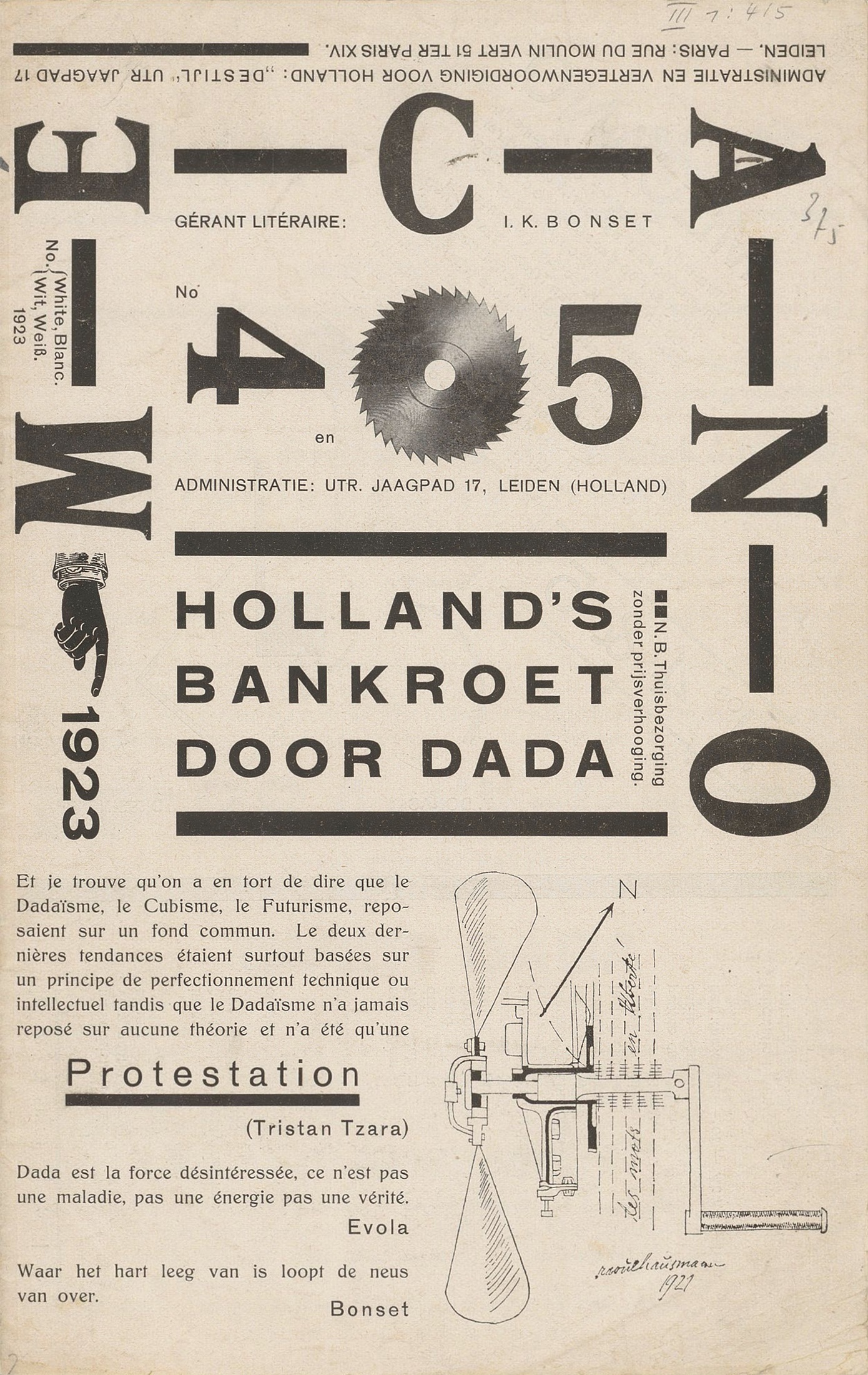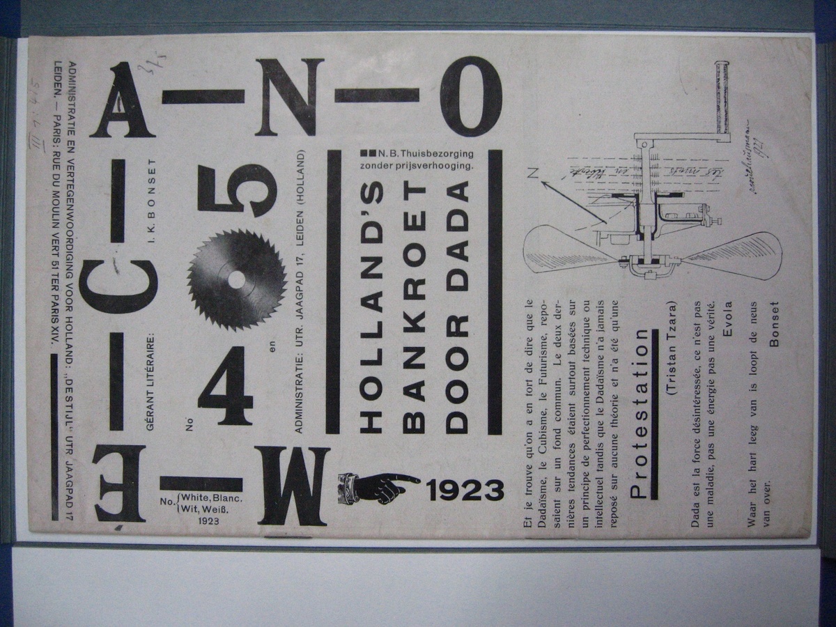Publication: I.K. Bonset (Van Doesburg, T.) (1923) Mécano | White, Blanc, Wit, Weiss: Holland’s bankroet door Dada, 4/5. Leiden: De Stijl. Courtesy of Kunsthaus Zürich, Dada-Sammlung.