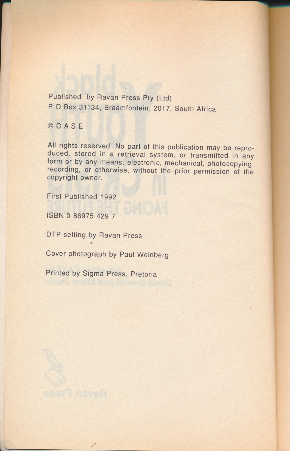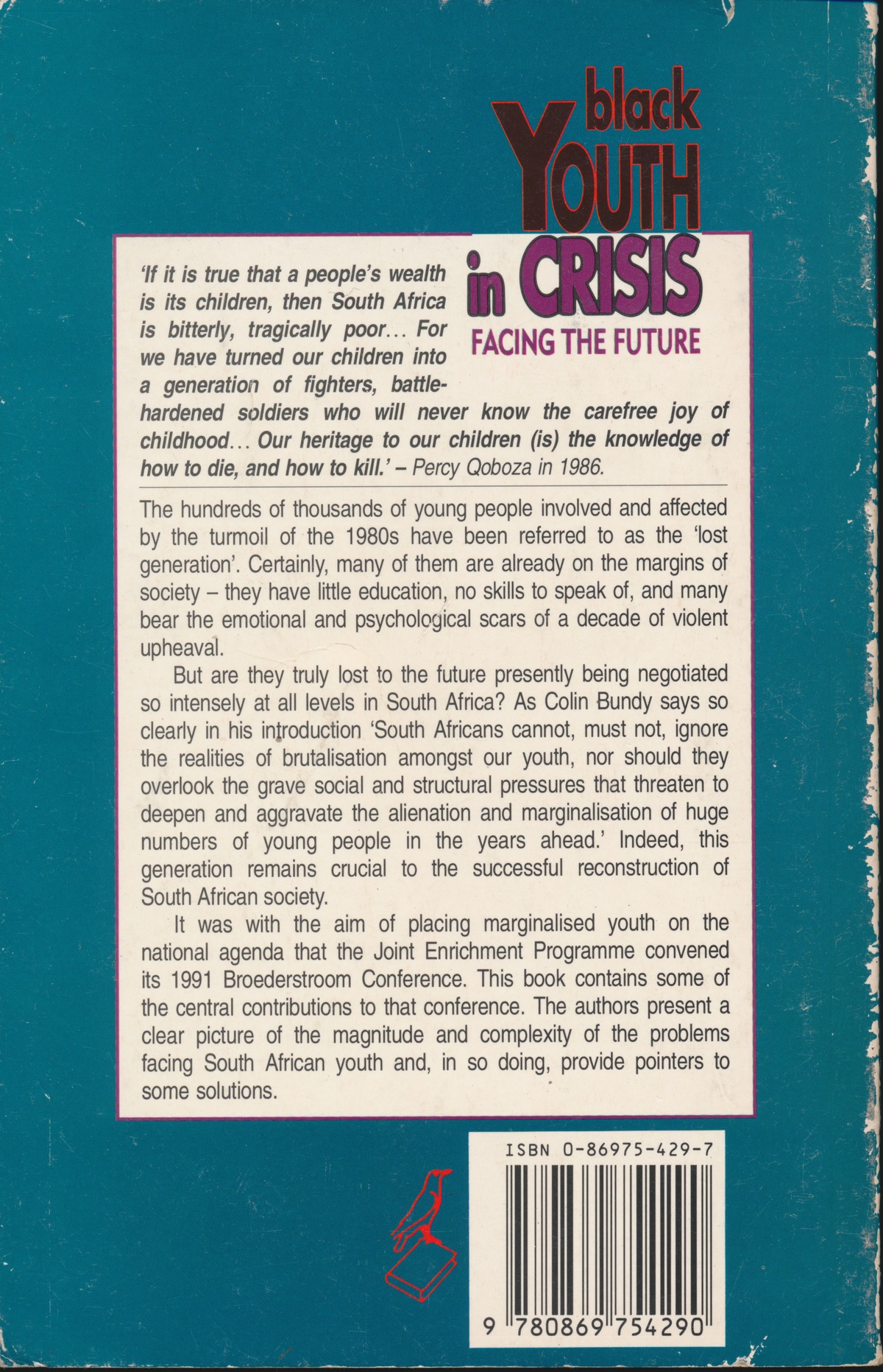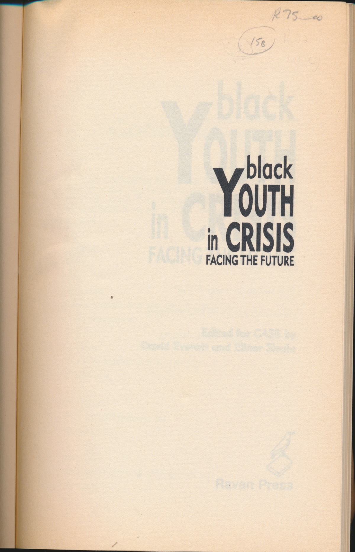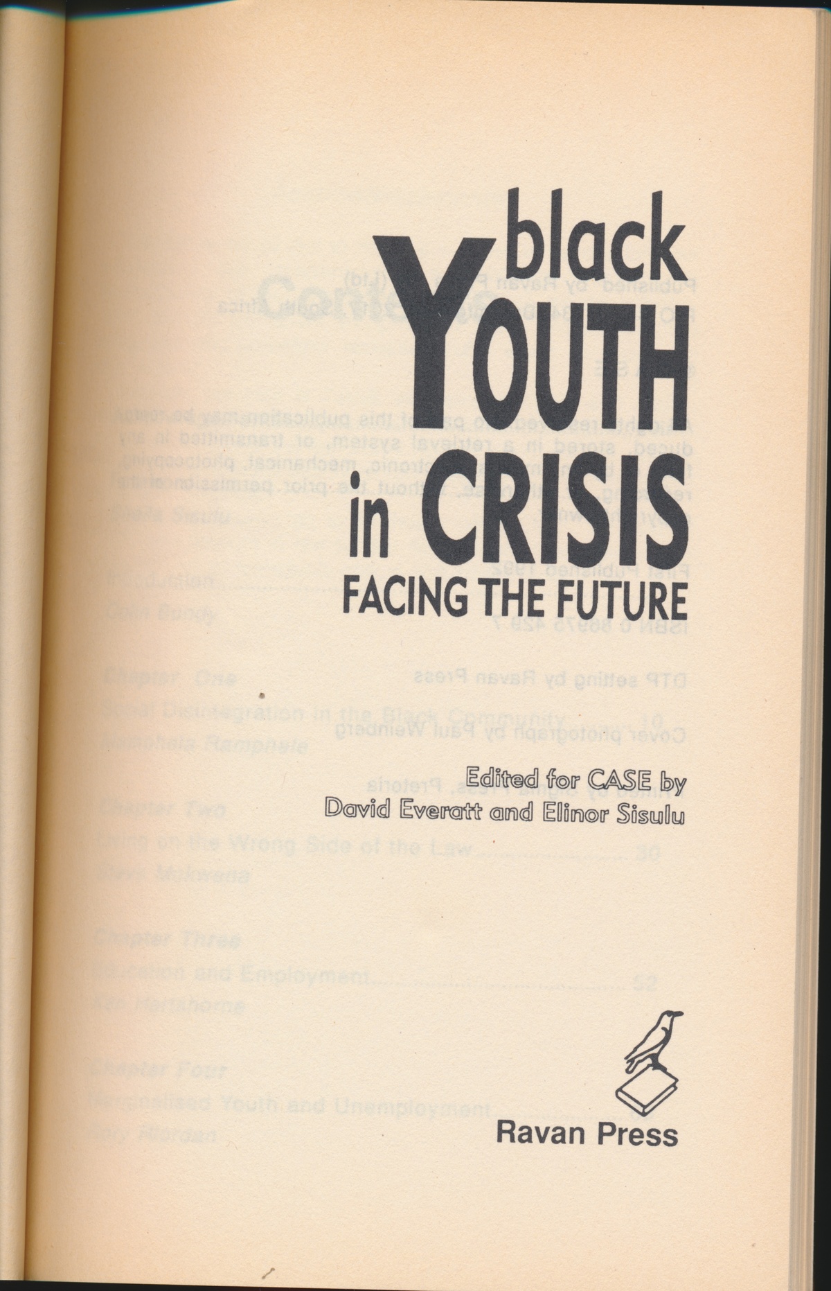 Everatt, D. and Sisulu, E. (2017) Black Youth in Crisis: Facing the Future. Johannesburg: Ravan Press.