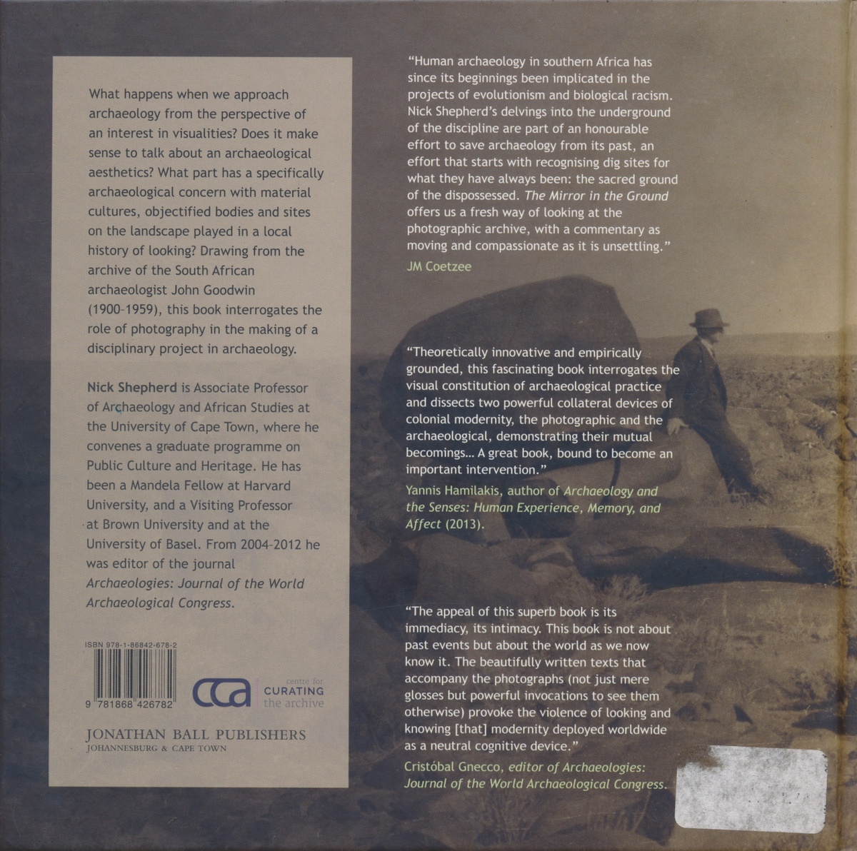 Shepard, N. (2015) The Mirror in the Ground: archaeology, photography, and the making of a disciplinary archive. Cape Town and Johannesburg: Centre for Curating the Archive and Jonathan Ball Publishers.
